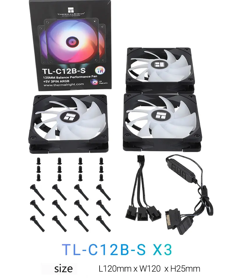 Thermalright-ventilador TL-C12B-S X3 de 12cm, ventilador sinfonía de bajo ruido, rodamiento de S-FDB, compatible con ARGB, ventilador de hasta 17 modos