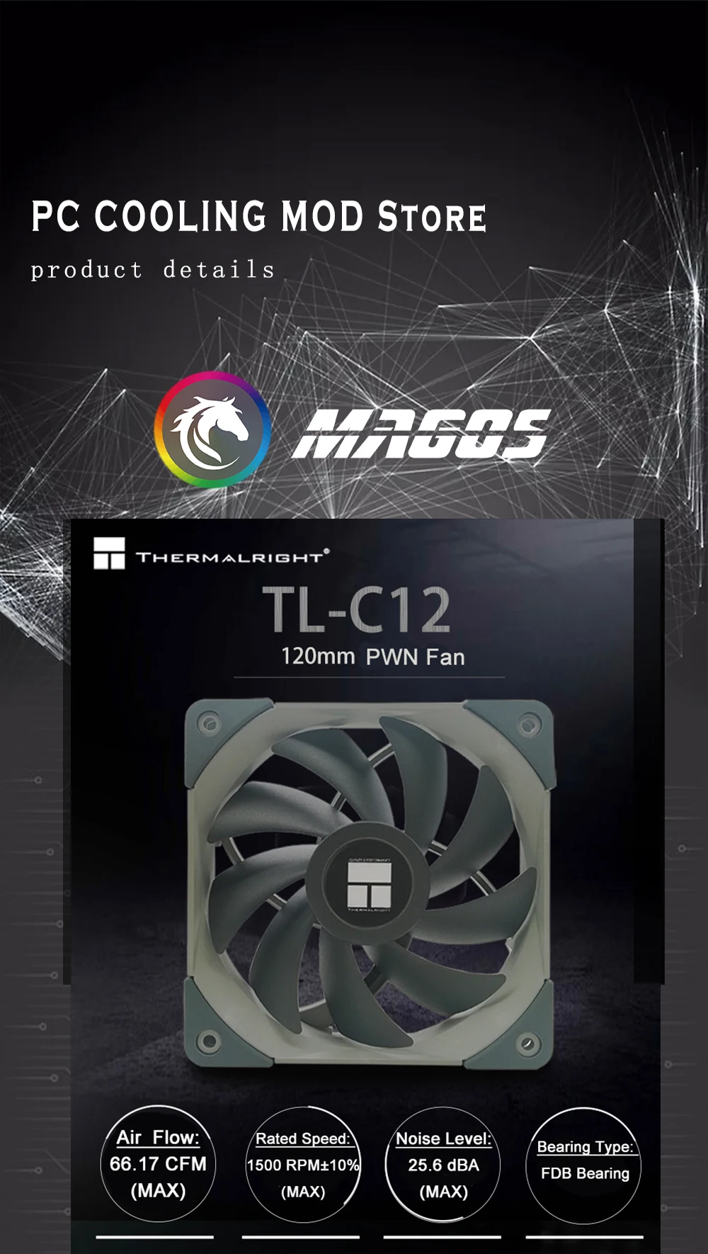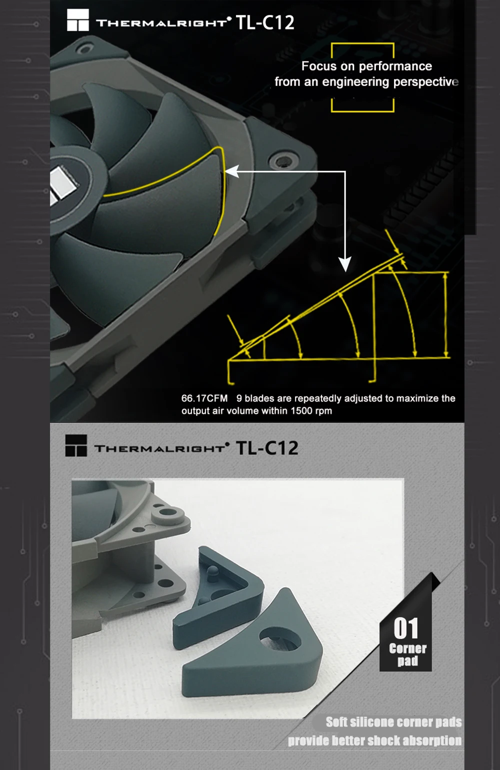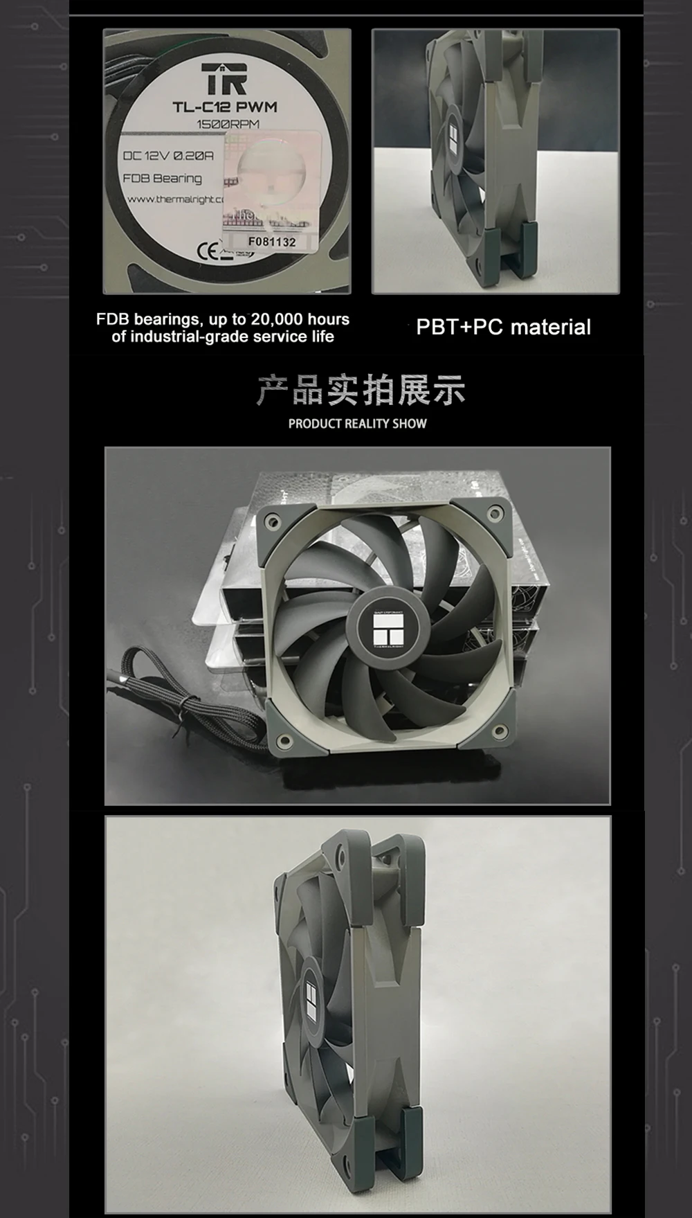 Thermalright 120mm PWM PC Case Ventiladores de refrigeración 12cm,CPU Cooler Radiator 1500RM Sistema de disipación de calor refrigerado por aire Negro/WhiteTL-C12