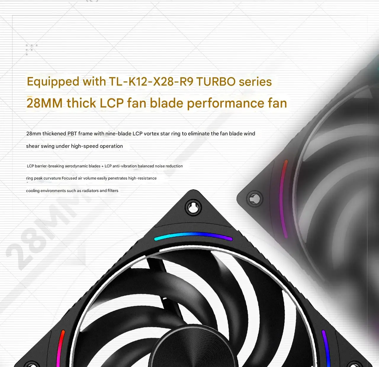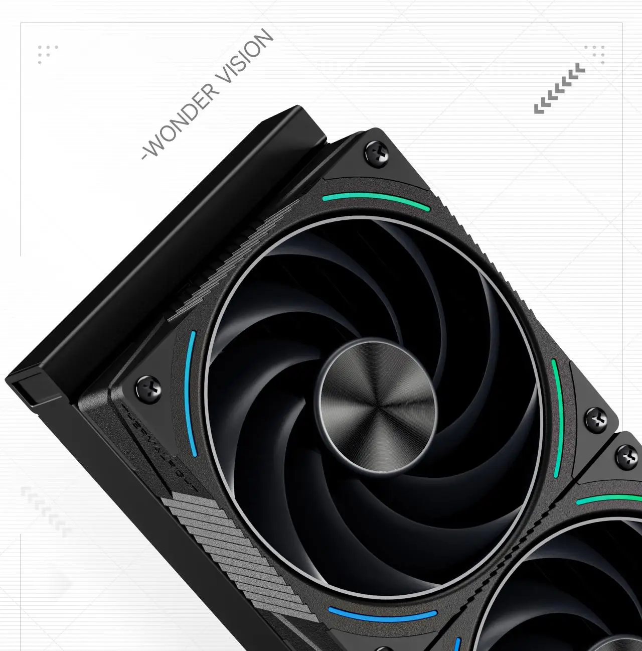 El enfriador de agua mejorado de 360 mm mide 403x120x52 mm y el cabezal de enfriamiento es 120.1x80x107 mm, la velocidad de la bomba de agua es 6400 RPM ± 10%, el voltaje es DC 12 V y, con la cooperación de 3 ventiladores con una alta velocidad de 3000 RPM, puede garantizar que el enfriador enfríe bien la temperatura de la CPU.