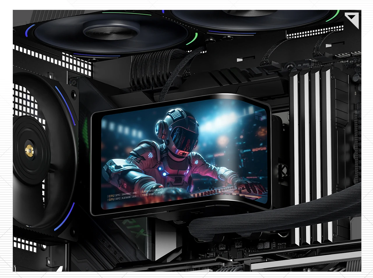 La pantalla curva 3D admite la visualización de vídeos 3D y 2D, imágenes dinámicas e imágenes estáticas.La pantalla AMOLED tiene colores delicados que pueden restaurar con precisión la autenticidad de los colores.Puede crear libremente temas, mostrar varios parámetros del sistema de monitoreo, crear temas de fondo estáticos y dinámicos y definir libremente la presentación del texto.