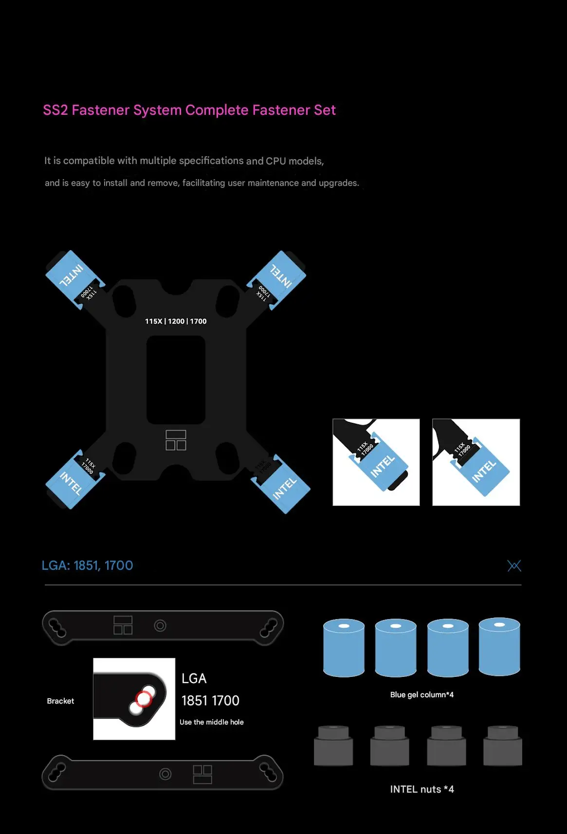 Der Wasserkühlungsheizkörper unterstützt Intel:LGA 1851/1150/1151/1155/1156/1200/1700/2011/2066; AMD:AM4/AM5, gepaart mit doppelter Plattform-Vollmetallschnallen für eine einfache Installation, wird die Installation in Verbindung mit dem Installationsvideo empfohlen oder Handbuch.
