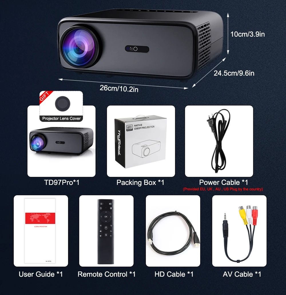 Comprar ThundeaL-Proyector Full HD 1080P, WiFi 6, Android TD97 Pro, TD97Pro, para películas en casa, teléfono inteligente IOS, 3D, TV