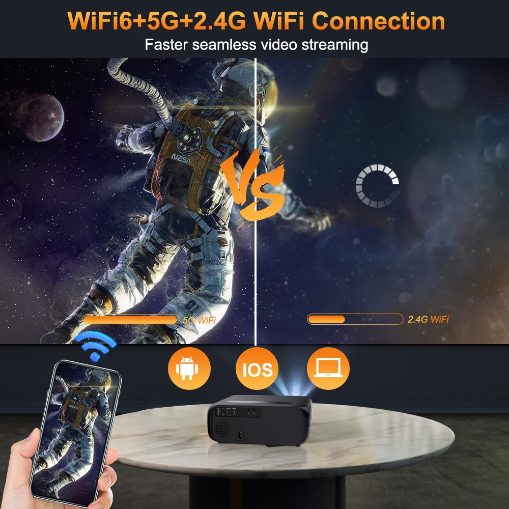 Proyector diseñado con la última tecnología WiFi 6G/2,4G/5G
