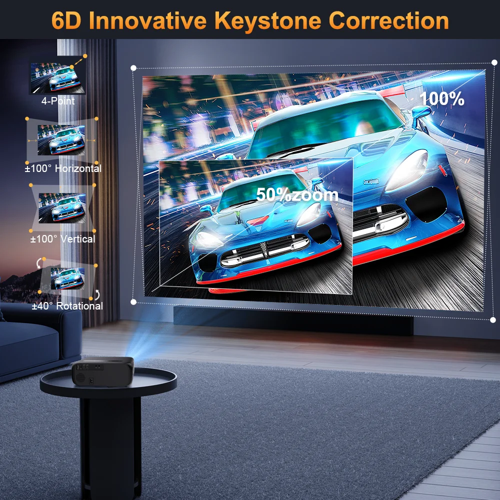 Corrección Keystone automática innovadora 6D y función de zoom 50-100%