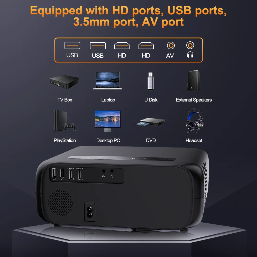 El proyector es compatible con TV BOX,TV Stick, portátil, USB, ordenador, PS3, PS4, Switch, etc.