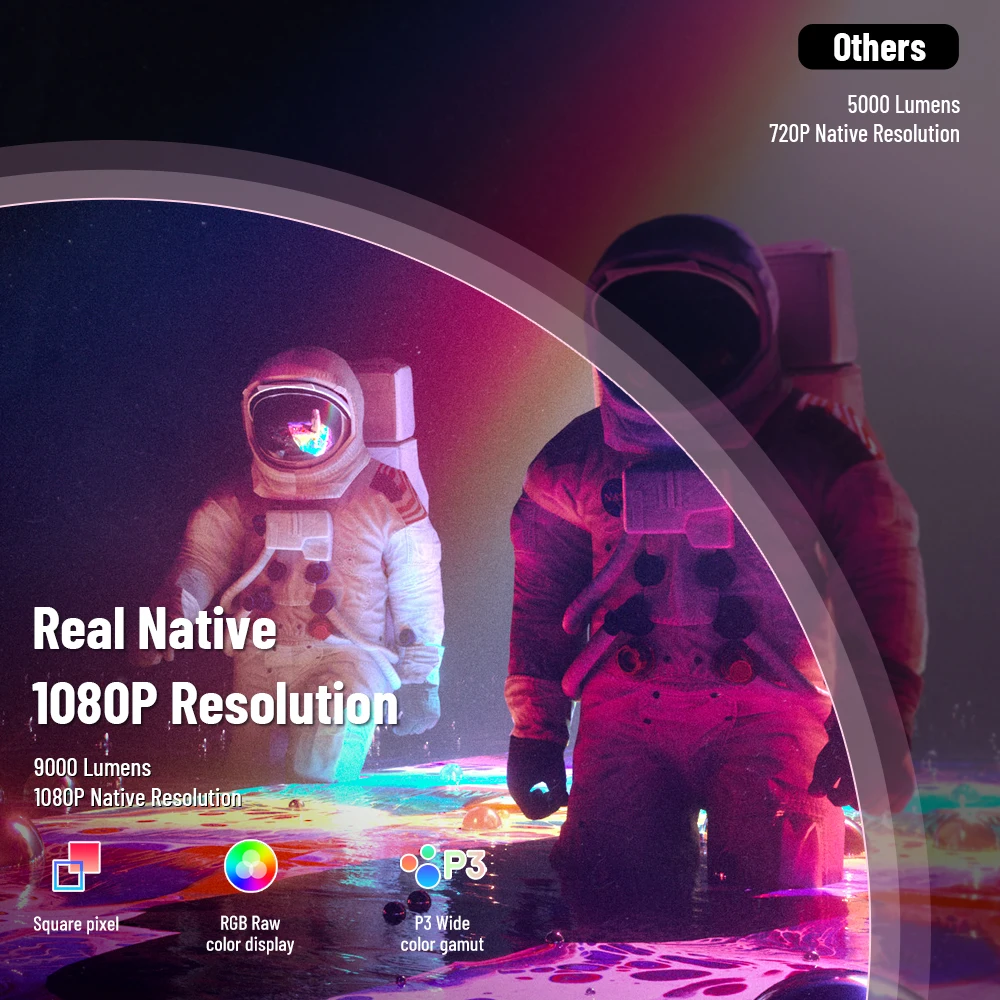 Proyector Full HD 1080P, tecnología mejorada con LED superbrillantes y pantalla LCD, alto contraste 15000:1 garantiza una gama de colores más amplia e imágenes más claras para ver películas en interiores y exteriores.