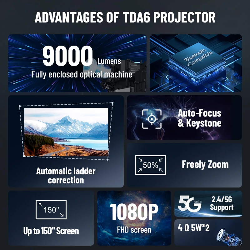 Comprar ThundeaL-Proyector portátil TDA6 para cine en casa, dispositivo de proyección Full HD 1080P, 2K, 4K, con enfoque automático, WiFi 5G, Android, TDA6W, 3D