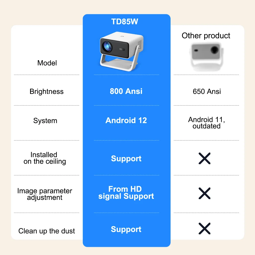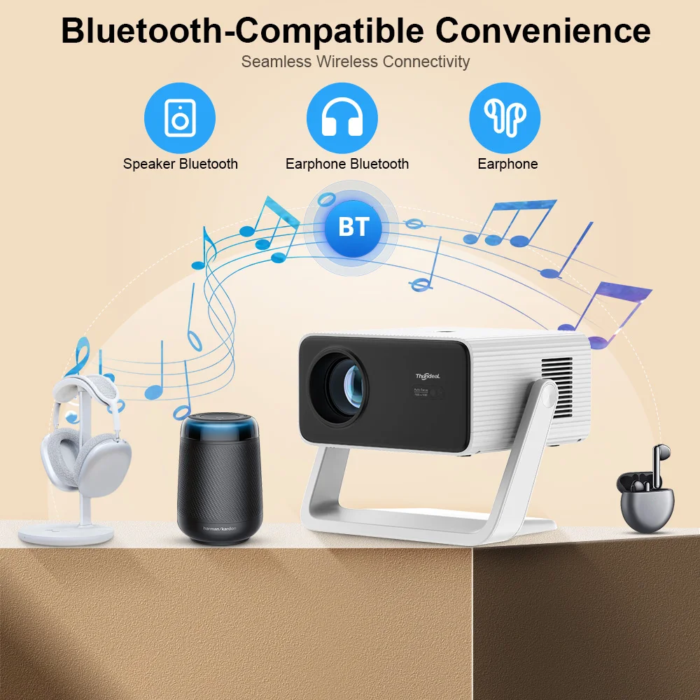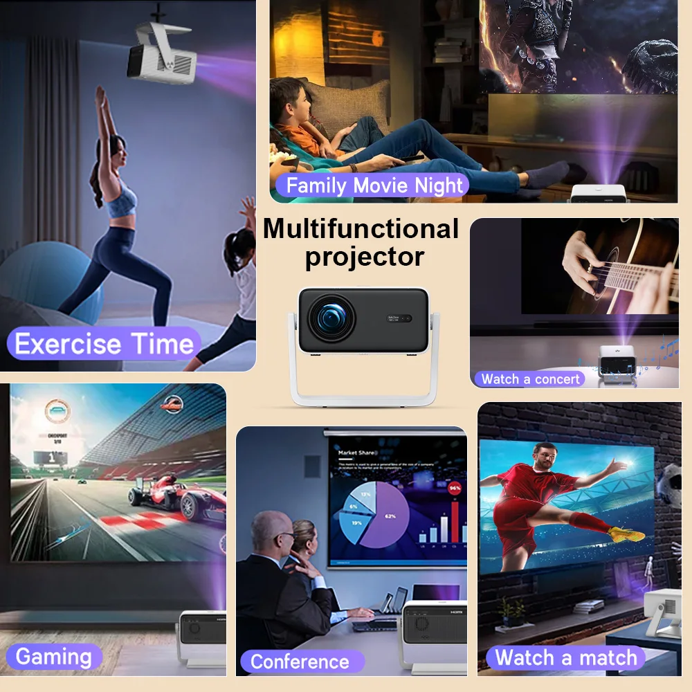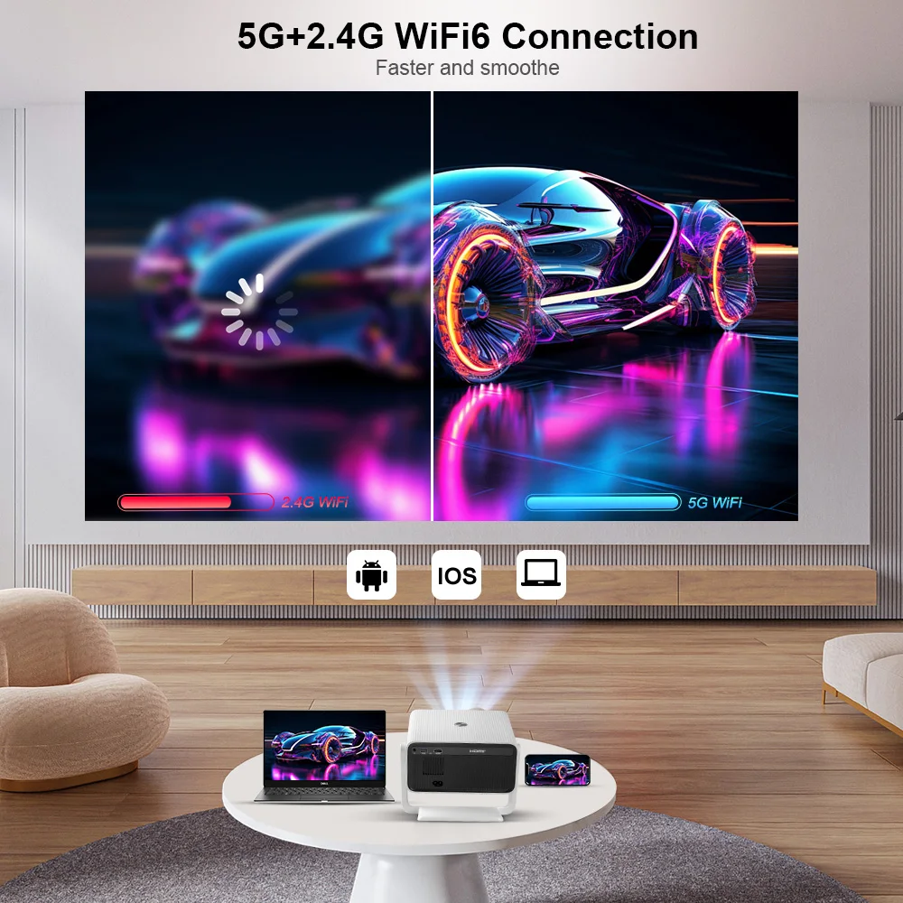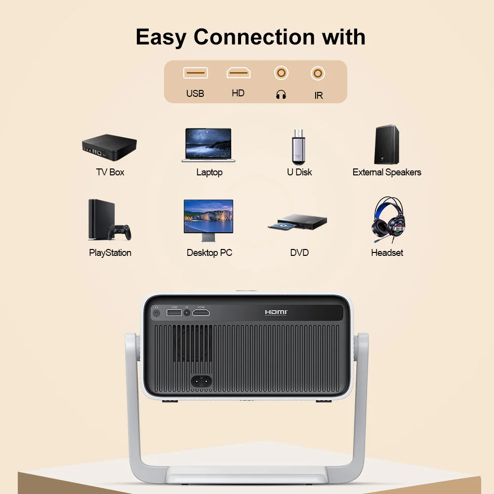 Proyector con aplicaciones integradas, con sistema Android 12, ejecuta aplicaciones de transmisión y medios de forma impecable.Muestre sin problemas contenido desde la aplicación y más en su mini proyector para un entretenimiento sin fin.