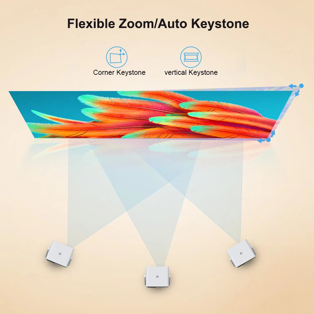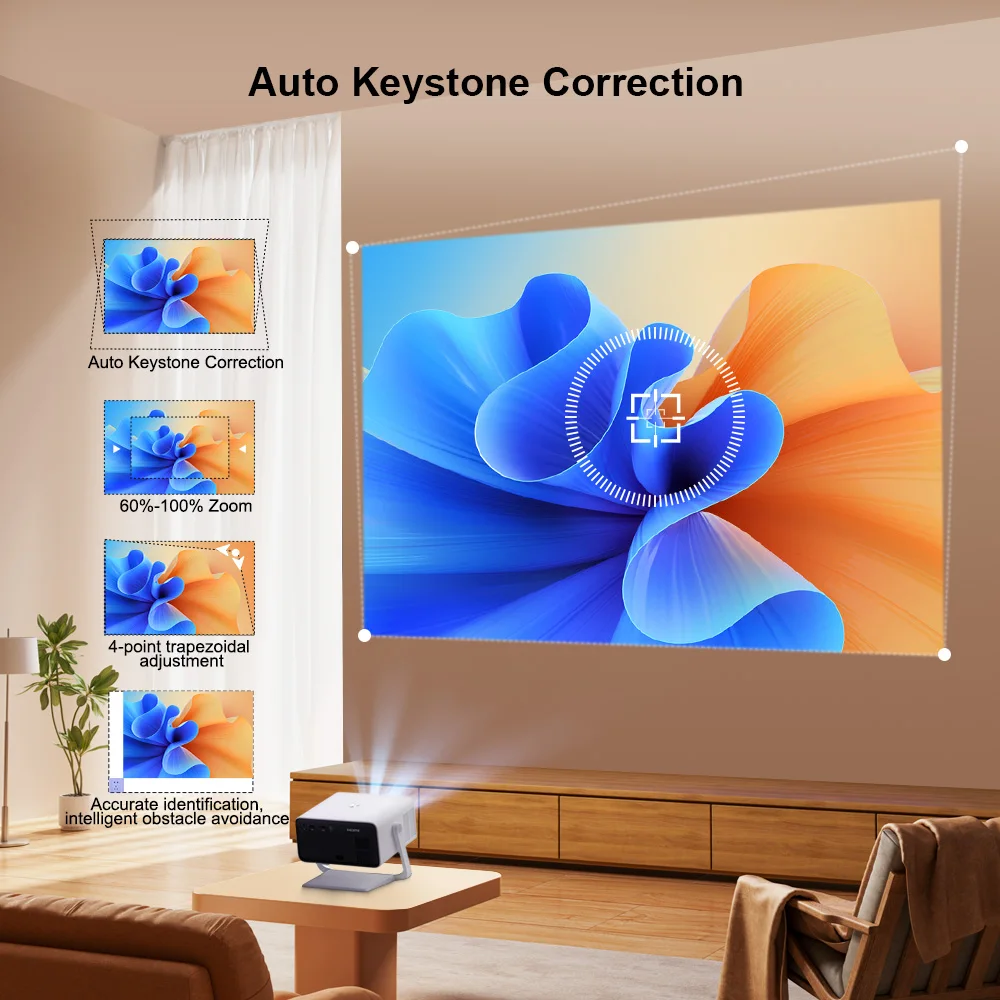 La corrección trapezoidal automática 8D admite ajustes automáticos multidimensionales.No importa cómo se coloque el proyector, puede ofrecer rápidamente una imagen cuadrada y clara, liberándole completamente de restricciones de posicionamiento.