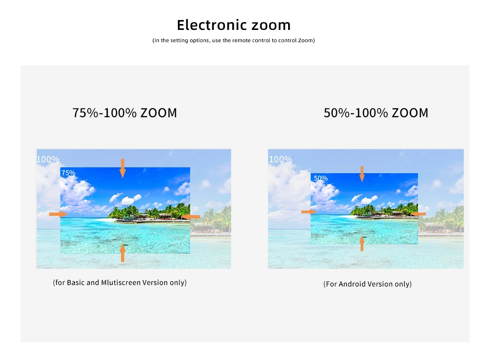 After mount this projector on ceiling, you can still adjust the screen size by "Zoom" on the Projector