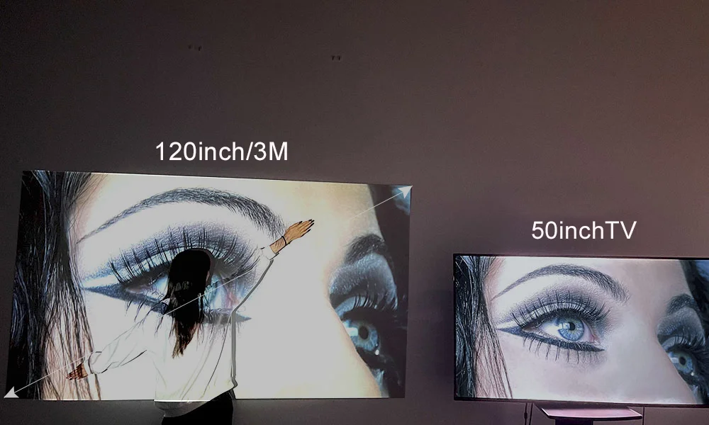 Our projector utilizes the bright LED light and lcd display technology, with 12000Lumens high brightness significantly provides over 60+% brightness than other mini projector