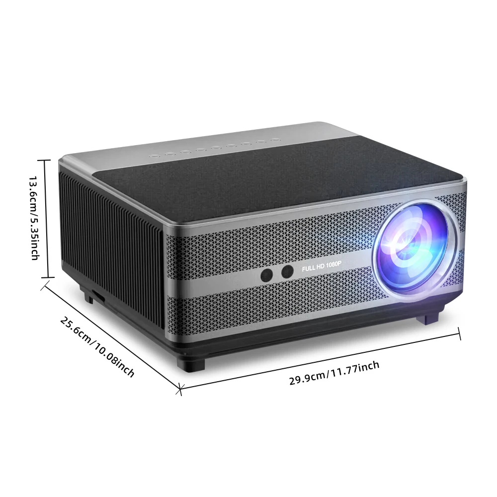 Proyector Full HD 1080P, este proyector wifi adoptó tecnología mejorada con LED superbrillantes y pantalla LCD, 100%+brillo y alto contraste de 20000:1 garantizan una gama de colores más amplia e imágenes más claras para ver películas en interiores y exteriores.