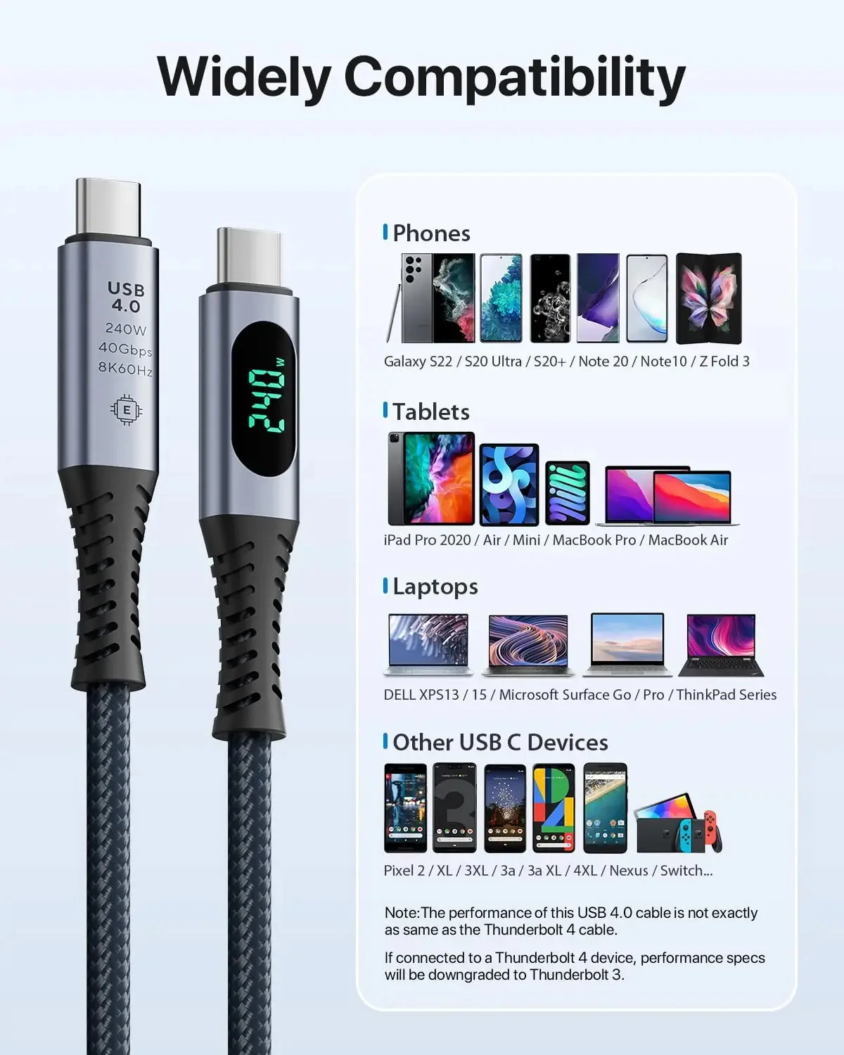 Transferencia de datos de hasta 40 Gbps:Duplica la velocidad de transferencia de datos en comparación con cables más antiguos, ¡capaz de transferir 100 Gb de datos en 40 segundos!