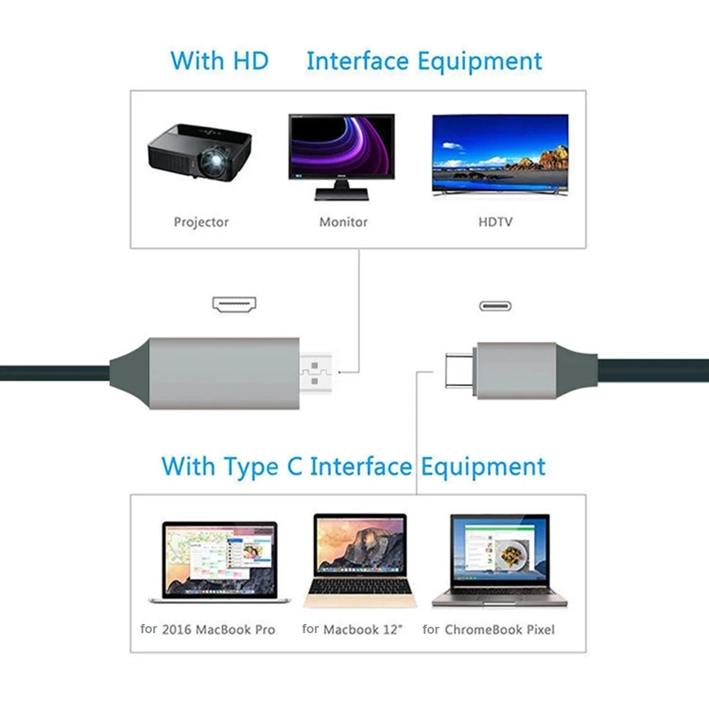 Comprar Thunderbolt3 Type-C Naar 4K Uhd Display Converter Koord Voor Macbook Ipad Pro Chromebook Naar Hdtv Monitor Projector Usb C Hd Kabel 2M
