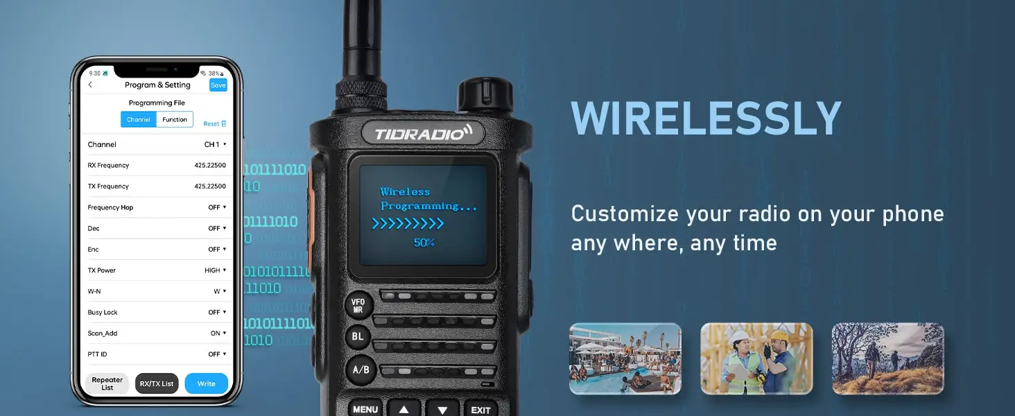 ✅[Programación móvil y permite vinculación a listas de repetidores] No se necesita programador inalámbrico TIDRADIO, no necesita computadora, no necesita controlador, no es necesario preocuparse por qué cable de programación usar.El nuevo módulo de programación inalámbrico incorporado le permite administrar su radio bidireccional directamente en su teléfono en cualquier lugar y en cualquier momento. ¡Y puede vincularse a una lista repetidora cercana a través de la aplicación en su teléfono!