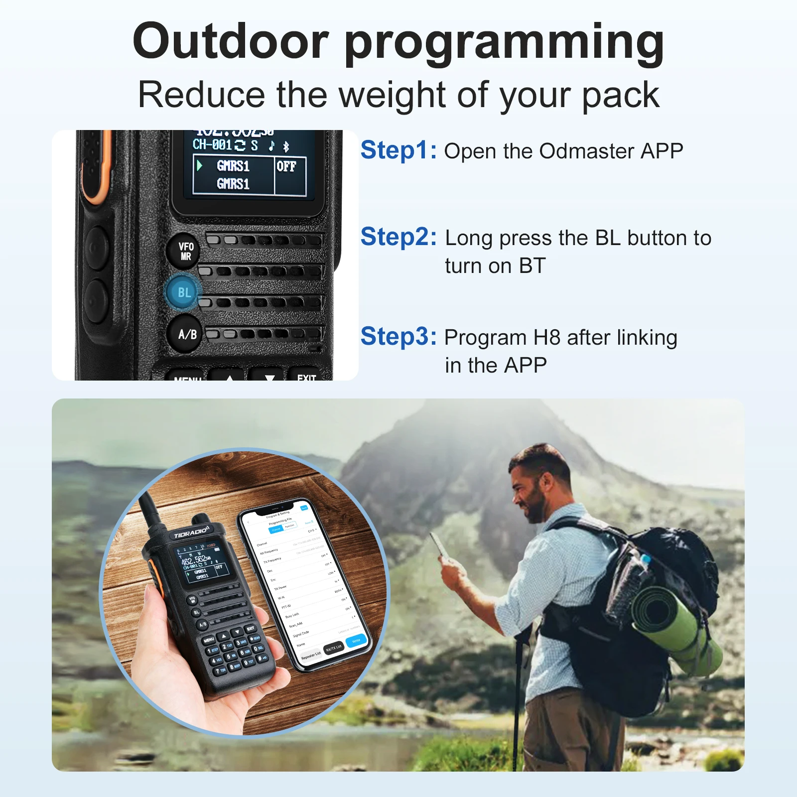 Comprar TIDRADIO TD H8 10W Walkie Talkie de alta potencia de largo alcance portátil conexión de Radio bidireccional aplicación de teléfono programación inalámbrica HAM GMRS