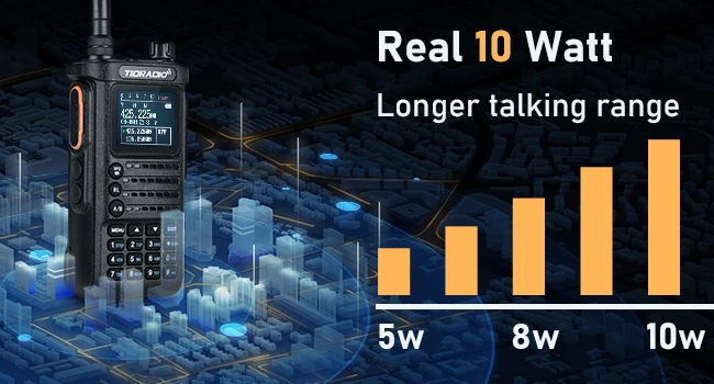 ✅[Potencia real de 10 vatios] TIDRADIO TD-H8 es una radio de doble banda con DOS TUBOS DE ENERGÍA.Este diseño especial le permite transmitir consistentemente a una potencia de salida relativamente alta, tanto como sea posible en todo el rango de frecuencia, lo que le proporciona un rango de comunicación más largo en comparación con las radios habituales de 5 vatios/8 vatios/10 vatios.Adjunto es una verdadera evaluación de celebridades de Internet(https://www.youtube.com/watch?v=G0HbTv1G_LQ)