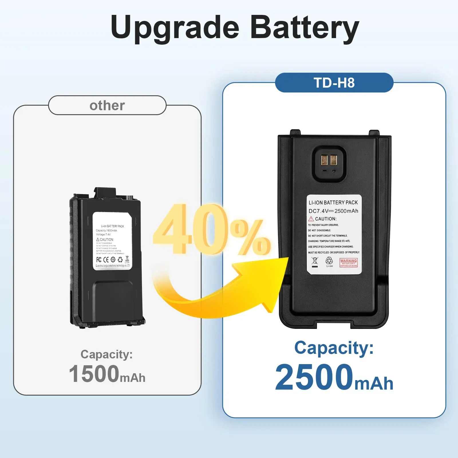 ✅[Función de radio múltiple] TD-H8 presenta múltiples funciones como otras radios portátiles: doble banda, reloj dual, modo meteorológico NOAA, sincronización de pantalla, CTCSS/DCS, escaneo, VOX, alarma remota/sitio...