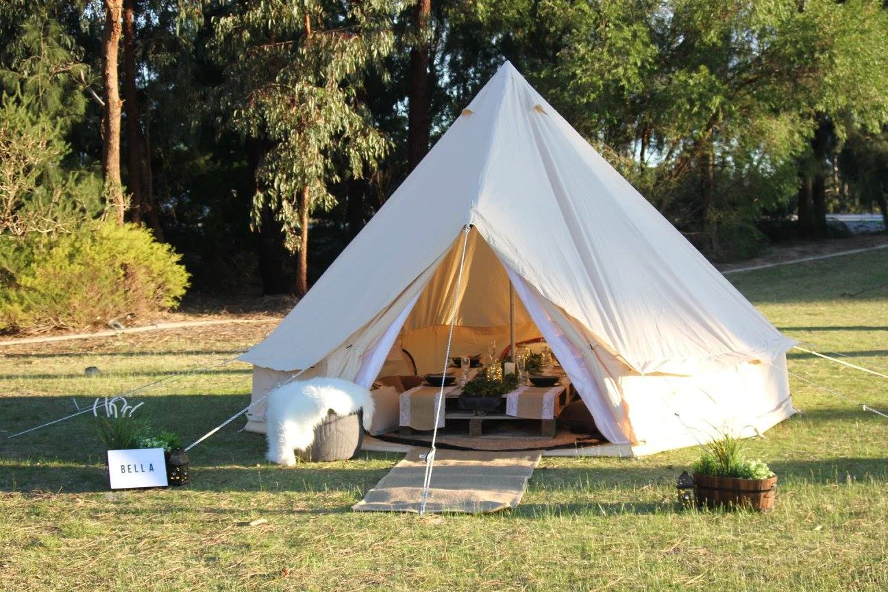 Nombre del artículo Tienda de campana Diámetro 3m,4m,5m,6m,7m Tela de techo Lona de algodón de 300 g/m2 Característica Revestimiento de PU, resistente al agua, resistente al moho. Cremallera Cremallera SBS MOQ 1 pieza Logotipo Logotipo personalizado La garantía 12 meses