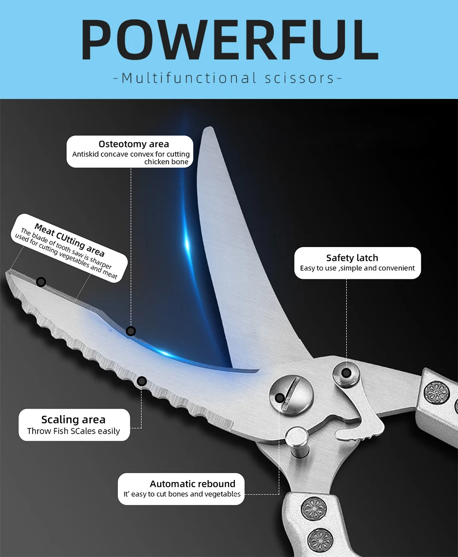 3. Asistencia de resorte integrada: equipado con diseño de rebote automático, apertura y cierre más libremente, cortar huesos es fácil y ahorra trabajo.