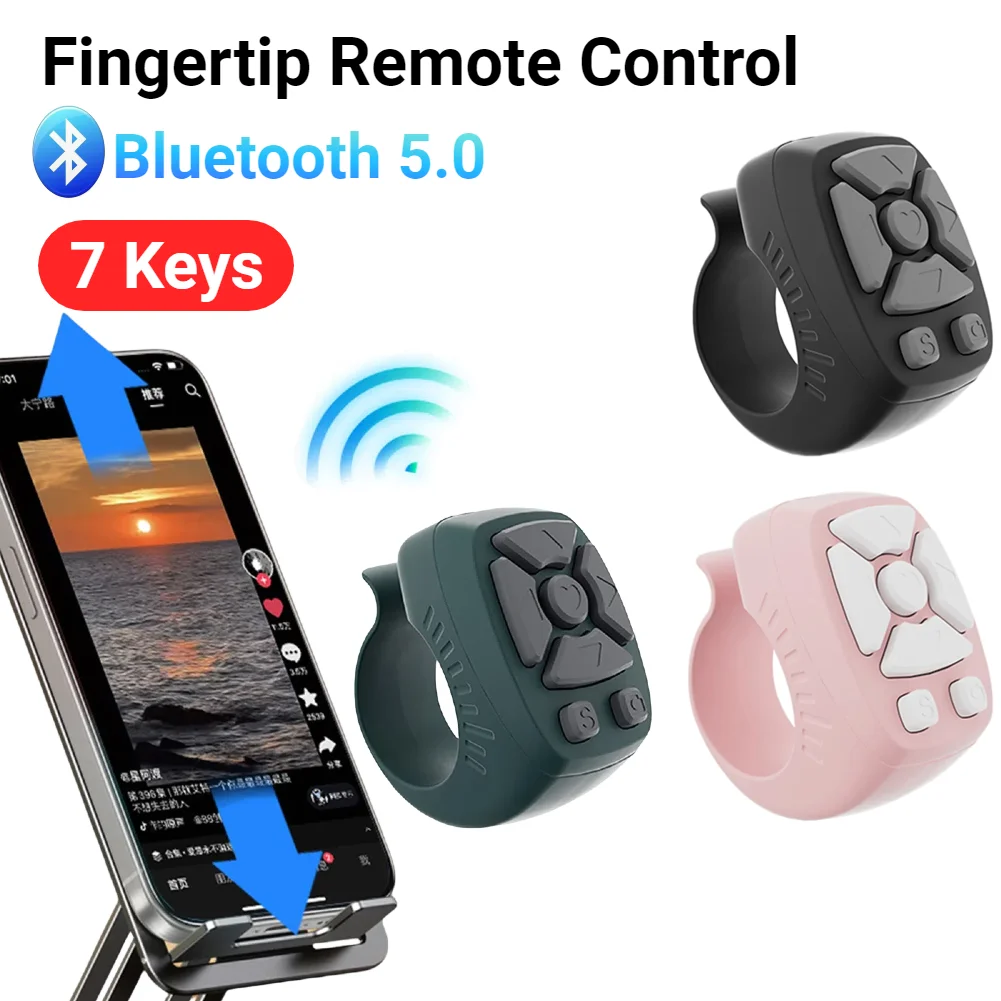 Para TikTok, anillo de desplazamiento, control remoto inalámbrico con punta de dedo, Control remoto de desplazamiento de vídeo 5,0 Compatible con 7 teclas, girador de página, compatible con Android, iOS, iPhone, iPad