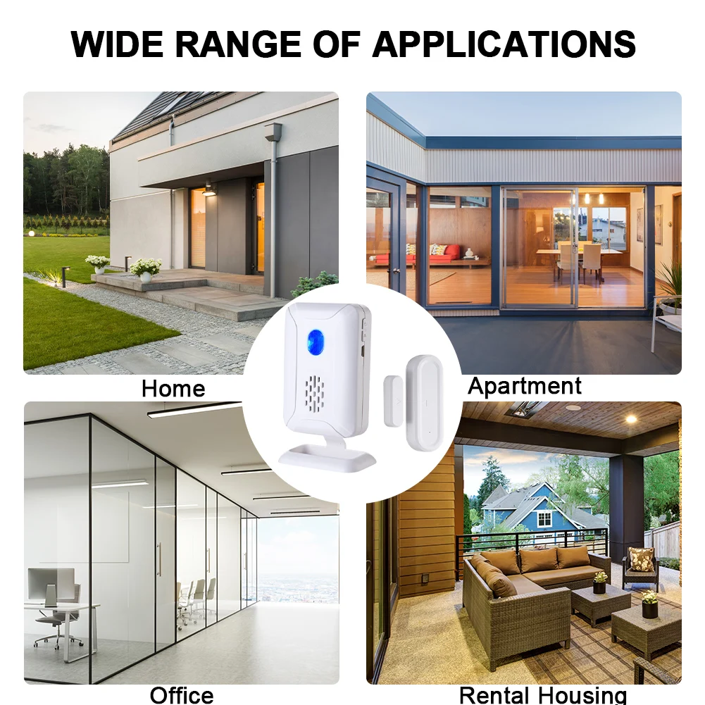 Comprar Timbre de apertura de puerta inalámbrico, Sensor de alarma de 4 niveles de volumen, carillón abierto de puerta, indicadores LED, timbre de entrada de puerta de tienda para abrir puertas