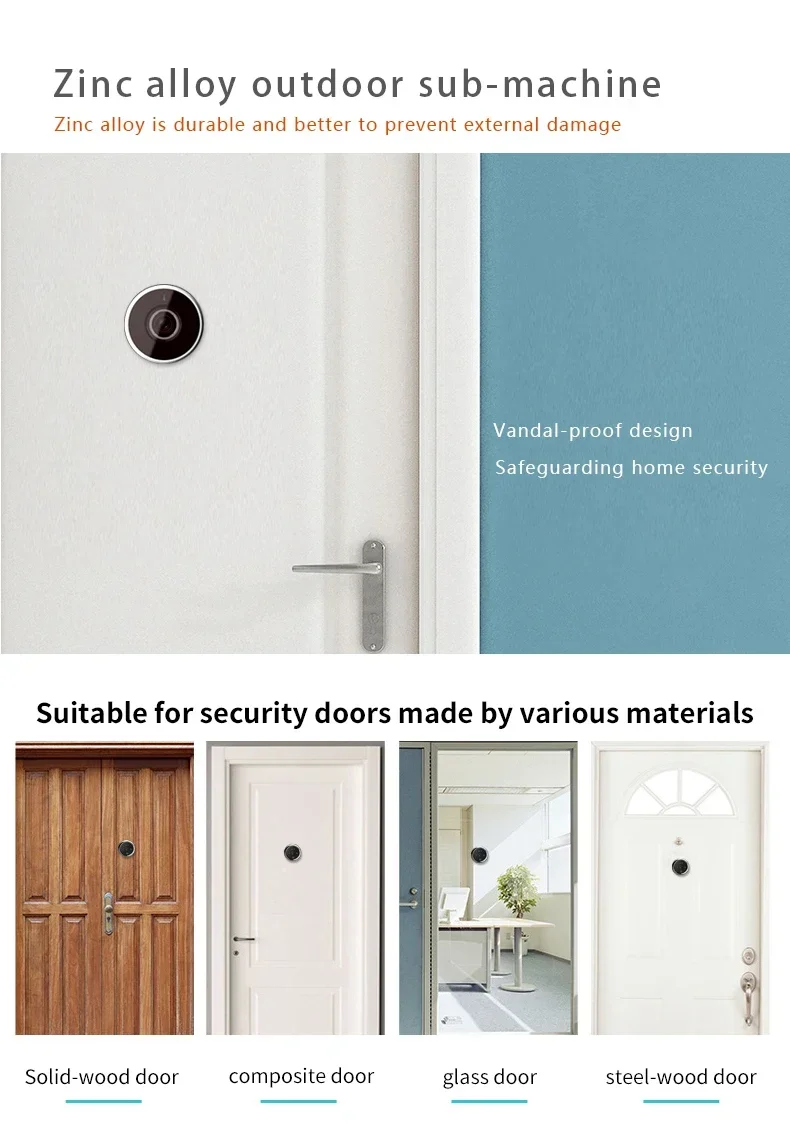 Timbre Digital con pantalla LCD a color de 3,5 pulgadas, mirilla electrónica, visor de cámara para puerta, timbre exterior con ojo de gato de 120 gradosMini cámara exteriorPantalla LCD a color de 3,5 pulgadasSensor de imagen en color industrial de alta definición OVÁngulo de visión real de 120 gradosMonitoreo las 24 horasEspecificaciones:Tipo: ojo mágicoMaterial: aleación de zincTipo: Timbre DigitalPantalla LCD: 3,5 pulgadasSensor: Sensor CMOS de 2 megasFunción: ahorro de energía, alerta de baja potenciaFuente de alimentación: 4 pilas AAA (no incluidas)Rango de orificios de puerta: 14-28 mmRango de espesor de puerta: 35-100 mmPalabra clave: visor de puerta digitalFuente de energía: 4 pilas AAAdiámetro del orificio de la puerta: 14-28 mmGrosor de la puerta: 35-100 mmTamaño del dispositivo interior: 120x62x20 mmDiámetro (cámara exterior): 30 mmPeso neto: 197 gNota:1.Puede haber ligeras desviaciones de tamaño debido a la medición manual, diferentes métodos de medición y herramientas.2.Es posible que la imagen no refleje el color real del artículo debido a las diferentes luces, ángulos y monitores de visualización.paquete:1 unidad exterior.1 unidad interior.3 tornillos.