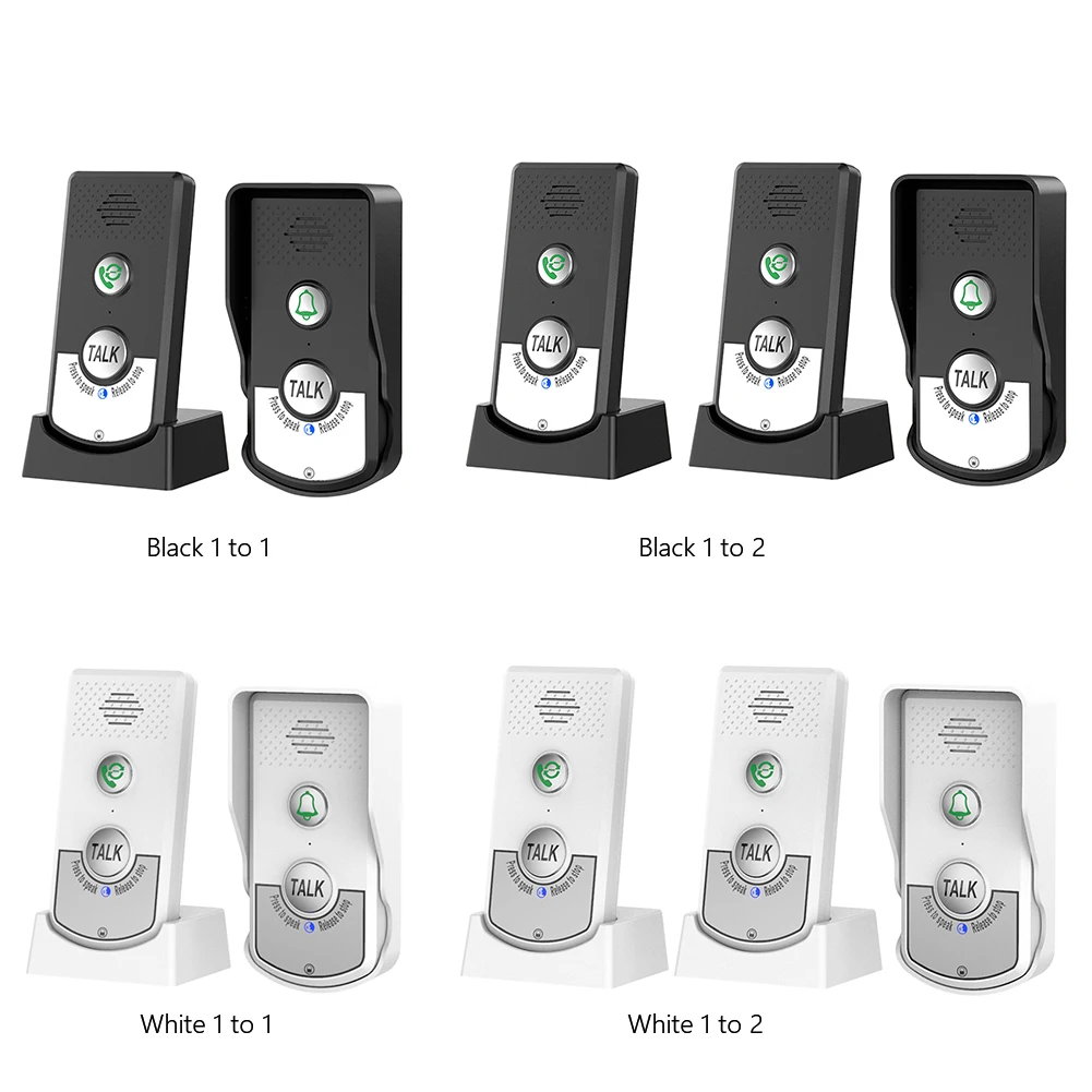 Timbre inalámbrico inteligente a prueba de agua, intercomunicador inalámbrico recargable, timbre de bienvenida, Kits de botones UV de larga distancia para interiores y exteriores Característica: 1. Comunicación a larga distancia:La distancia de comunicación real es de 1000m. Pisos 1 a 8. La apariencia es delgada, el grosor es de solo 18mm/0,71 pulgadas, y el grosor de productos similares en el mercado es más de 22mm/0,87 pulgadas, por lo que se siente bien sujetarlos. 2. Resistencia duradera:Tanto la unidad exterior como la unidad interior son baterías de litio reales de 2000mA. La unidad exterior funciona normalmente, presione 5 veces al día y hable durante 2 minutos cada vez, puede funcionar durante aproximadamente 8 meses. La unidad interior funciona durante aproximadamente 1 semana. 3. Buenos materiales:Los botones están hechos de plástico + gel de sílice, y la superficie está hecha de tecnología UV de alto brillo. En comparación con sus compañeros, utiliza todos los botones de goma, sin grado ni sensación. Diseño inteligente y humanizado, con luz de intercomunicación y pantalla de luz de encendido, los clientes pueden verlo de un vistazo. 4. Diseño 1 a 2:Dos unidades interiores pueden cambiar entre el modo de llamada de tono de llamada y el modo de interfono, y colocarlas en dos habitaciones respectivamente. Entonces, las dos unidades interiores también pueden hablar entre sí, que se pueden utilizar como interfonos. Hay dos modos de intercomunicación entre dos unidades interiores: 1. El modo predeterminado En, presione la tecla de llamada interna de una unidad interior y toque el timbre de la otra unidad interior. Mantenga presionada la tecla TALK para el intercomunicador; 2. El segundo modo En, no es necesario presionar la tecla de llamada interna, sino presionar y mantener presionada la tecla TALK para hablar. Cambie entre dos modos: Mantenga presionado el botón de llamada interno durante 5 segundos y escuchará 3 pitidos. 5. Dos métodos de carga:La unidad externa tiene dos métodos de carga, carga de CC, sin quitar la cubierta impermeable; y carga con la base de carga. En clave: 0 engranaje -- apagado; A engranaje -- A frecuencia; B engranaje -- B frecuencia. En caso de interferencia durante la llamada, la unidad exterior y la unidad interior cambian a la marcha A o B al mismo tiempo. Especificación: Origen: China continental Tipo de artículo: timbre inalámbrico Tipo de conexión: inalámbrico Itercom: Sí Modelo: H8 Color: negro, blanco (opcional) Material: ABS + metal + Silicona Estilo: (opcional) 1 a 1 (un timbre interior, un timbre exterior) 1 a 2 (dos timbres interiores, un timbre exterior) Distancia de transmisión: 1500m; Pared divisoria 20-100M Frecuencia de funcionamiento: 410M-490M Tiempo de trabajo: alrededor de 8 meses para el timbre al aire libre; Timbre interior: alrededor de 1 semana Ajuste de sonido: Ajuste de 3 marchas Modo de fuente de alimentación: batería de litio, 2000mAh Temperatura de funcionamiento: - 20C - 55C Tamaño del producto Timbre exterior: aproximadamente 121,5x61,5x31,3mm/4,78x2,42x1,23 pulgadas Timbre interior: aproximadamente 125x70x56mm/4,92x2,76x2,2 pulgadas Peso del producto con paquete: Timbre exterior: alrededor de 300g Timbre interior: aproximadamente 440G Notas para los clientes: A. El adaptador de corriente del timbre interior debe ser comprado por separado por el cliente. B. Un timbre interior requiere un adaptador de corriente (5V/1A-2A) -adaptador de corriente universal para teléfonos móviles. C. El timbre exterior y el timbre interior a 2m/6,56 pies del walkie talkie emitirán un sonido rugiente. Modo de carga del timbre exterior: 1. Retire el timbre de la puerta de la cubierta impermeable y luego colóquelo en el asiento de carga para cargarlo. 2. Conéctelo al puerto de carga de CC para la carga directa. Nota: Tarda unas 4 horas en cargarse completamente. Método de desmontaje del timbre exterior: 1. Utilice un destornillador para quitar o instalar los tornillos debajo de la cubierta impermeable. 2. Utiliza pegamento de esponja de doble cara para pegarlo en la pared. Sin llamadas ni análisis de fallas: 1. Si el botón de encendido entre el timbre exterior y el interior es consistente --- debe ser consistente 2. Si el timbre exterior tiene energía-cargado. 3. Si el timbre interior tiene energía-cargado 4. Si la conexión entre ellos es consistente --- volver a conectar 5. Ajuste la posición de instalación-si la distancia es demasiado grande o hay demasiados obstáculos Nota: