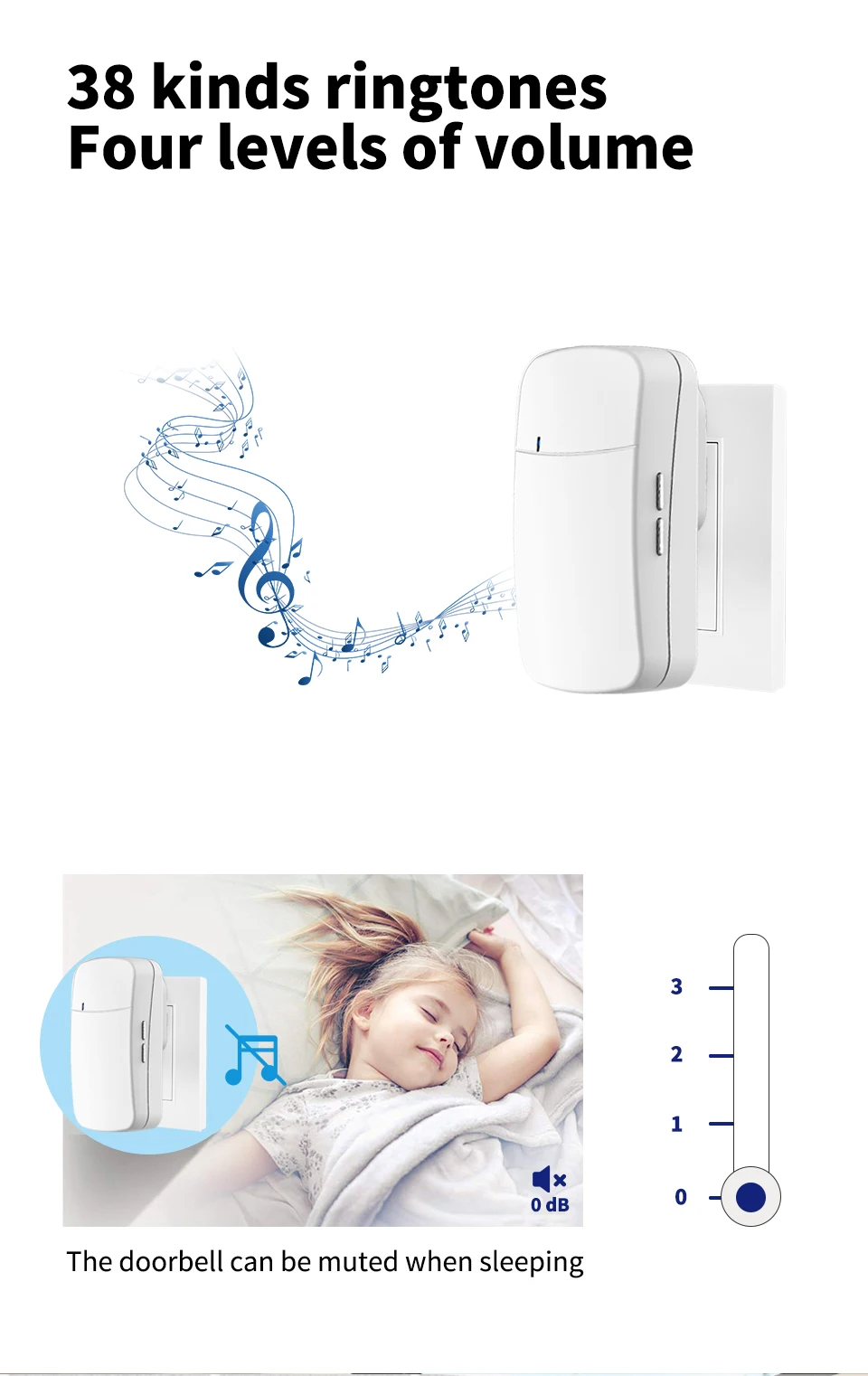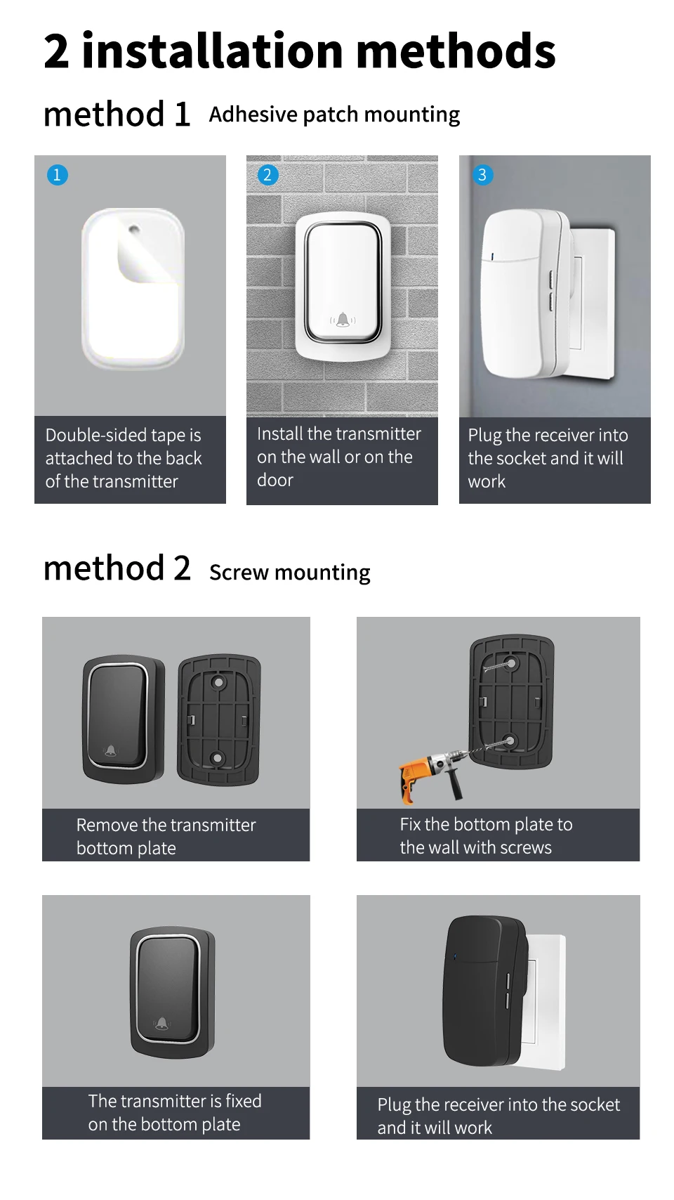 Timbre inalámbrico sin batería, juego de timbre de puerta autoalimentado impermeable, timbre de anillo cinético para exteriores para el hogar, UE, EE. UU., Reino Unido