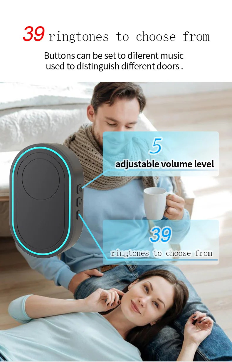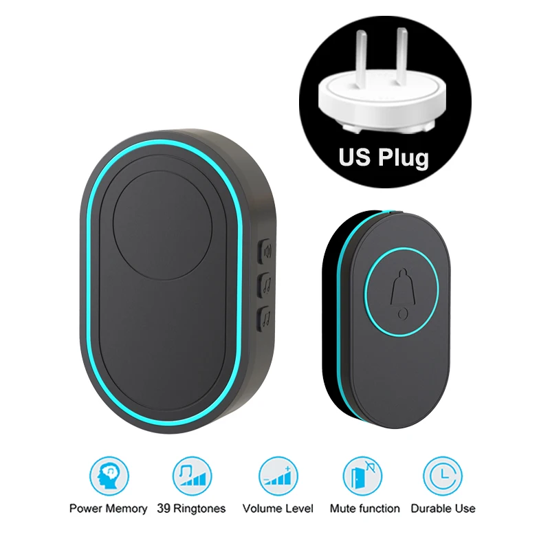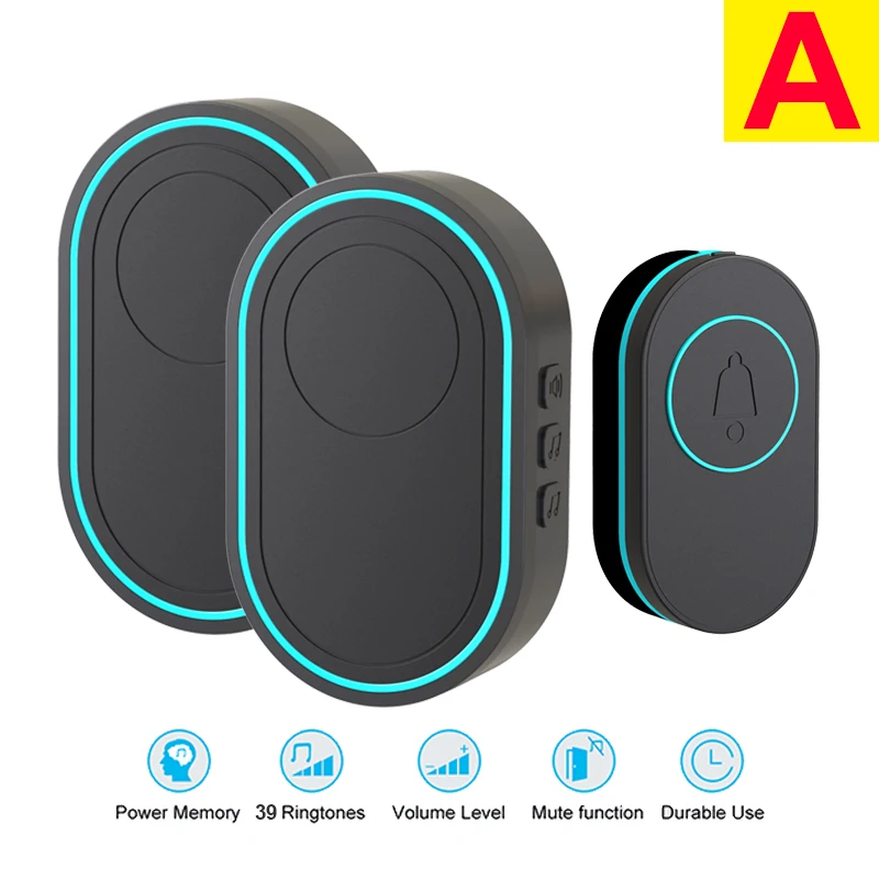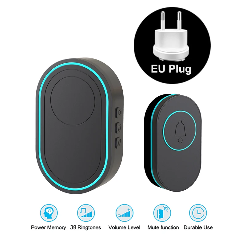 Timbre inalámbrico EARYKONG, timbre de puerta inteligente de bienvenida al hogar, resistente al agua, larga distancia inalámbrica, 39 tonos de llamada, soporte luminoso