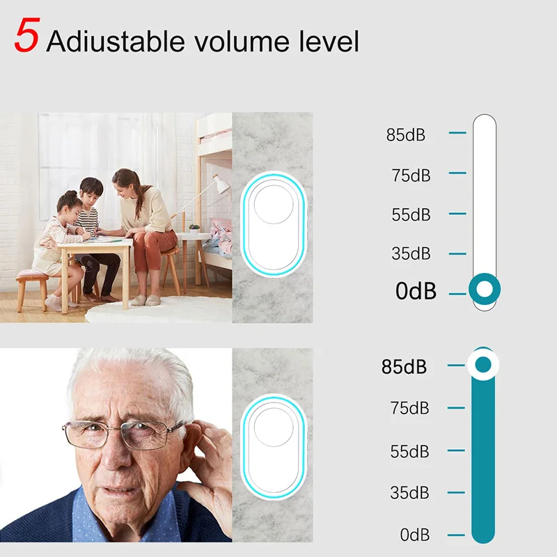 Esta es una campana multifuncional.39 canciones (incluidos los sonidos de sirena), 5 niveles de volumen.Se puede utilizar como timbre o como sirena.