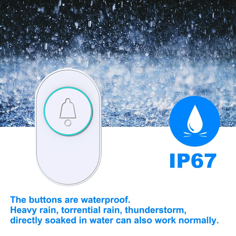 Comprar Timbre inalámbrico IP67, resistente al agua, botón exterior, timbre de puerta inteligente para casa, alarma de seguridad con Flash LED para casa