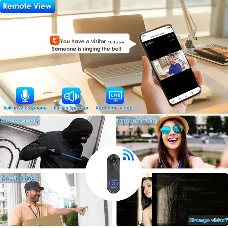 Comprar Timbre inteligente con Control remoto, detección de movimiento, conveniente, vídeo claro, seguro, aplicación, Audio bidireccional, elegante