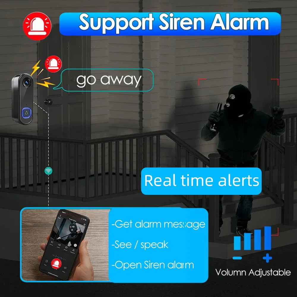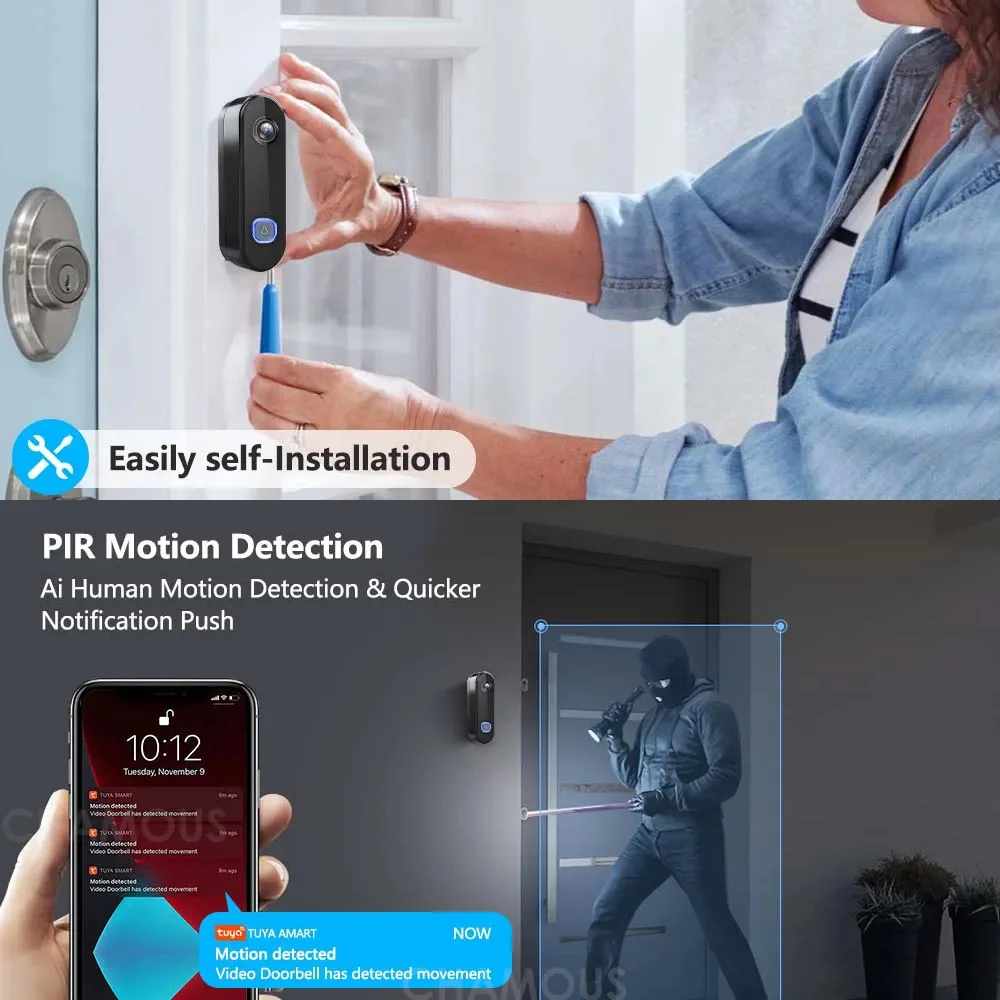 【Visión nocturna automática y soporte Tuya Smart】El timbre de video está equipado con un sensor infrarrojo de alta gama. La luz infrarroja se encenderá automáticamente en condiciones de poca luz y la cámara cambiará a un modo infrarrojo. Es compatible con Tuya, lo que hace que su hogar sea cómodo y conveniente.