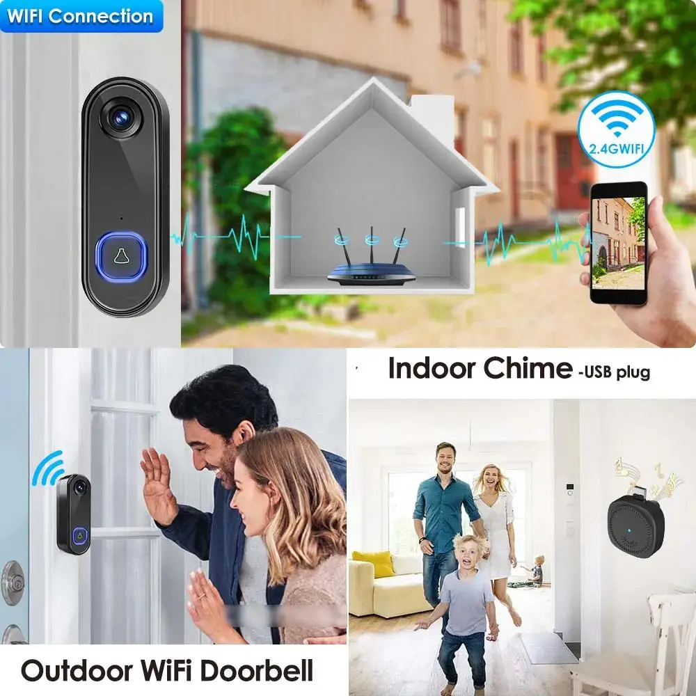 Control remoto Detección de movimiento Conveniente Smart Clear Video Timbre inteligente seguro con aplicación Audio bidireccional Timbre inteligente elegante