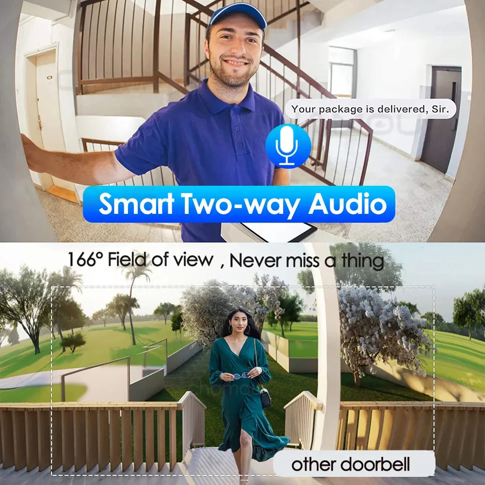 【Audio bidireccional con vídeo en tiempo real】 el videoportero le permite comunicarse con los visitantes en cualquier lugar mediante videoportero y tiene un micrófono y altavoces incorporados. Vea vídeos desde su timbre en tiempo real usando sus teléfonos inteligentes.