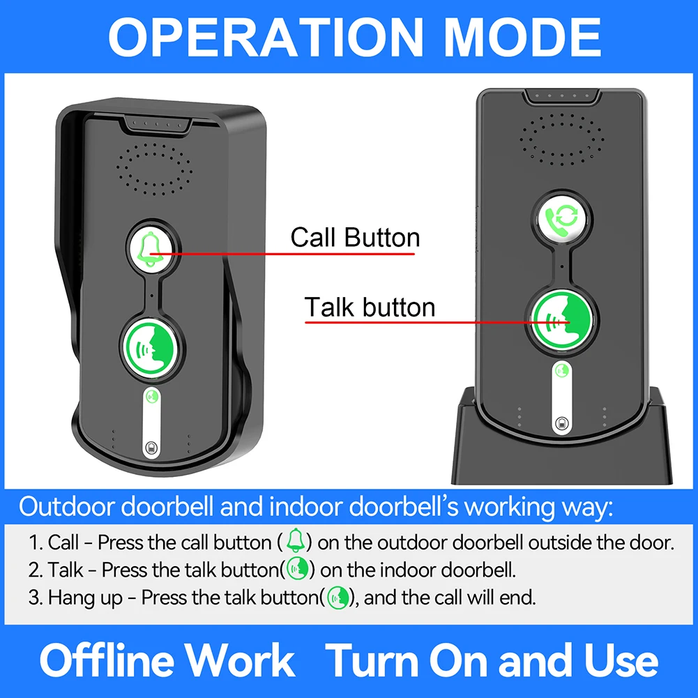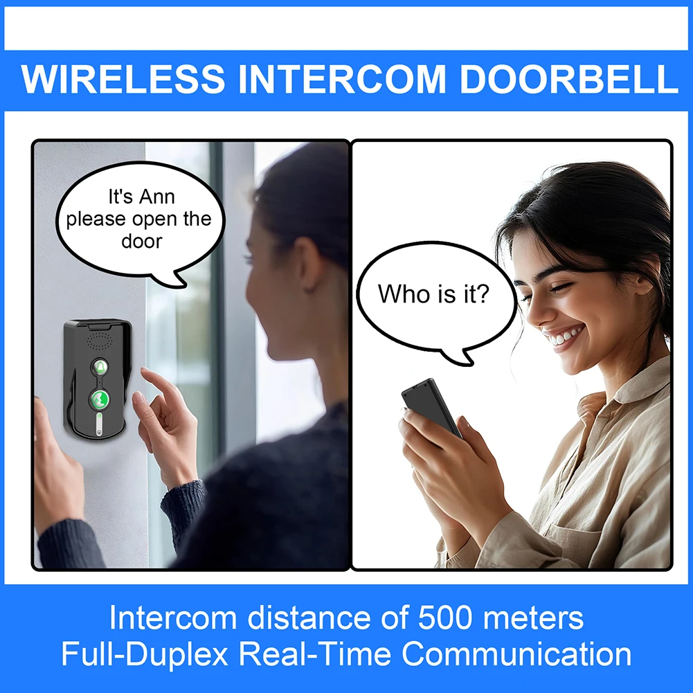1. Intercomunicador dúplex completo:Disfrute de una comunicación perfecta como estar de llamada con el timbre del intercomunicador inalámbrico, lo que lo hace conveniente y eficiente.