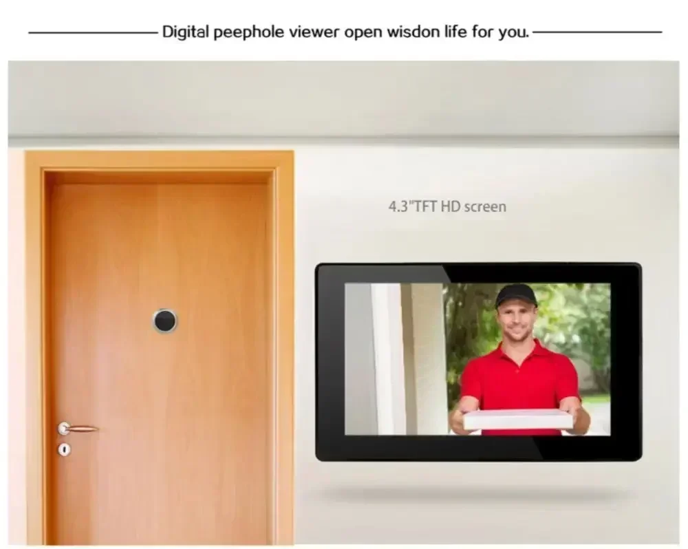 Timbre de mirilla de 4,3 pulgadas 145° Timbre con cámara gran angular, Monitor Visual 720P, timbre de seguridad para casa, apartamento, ojo de gato