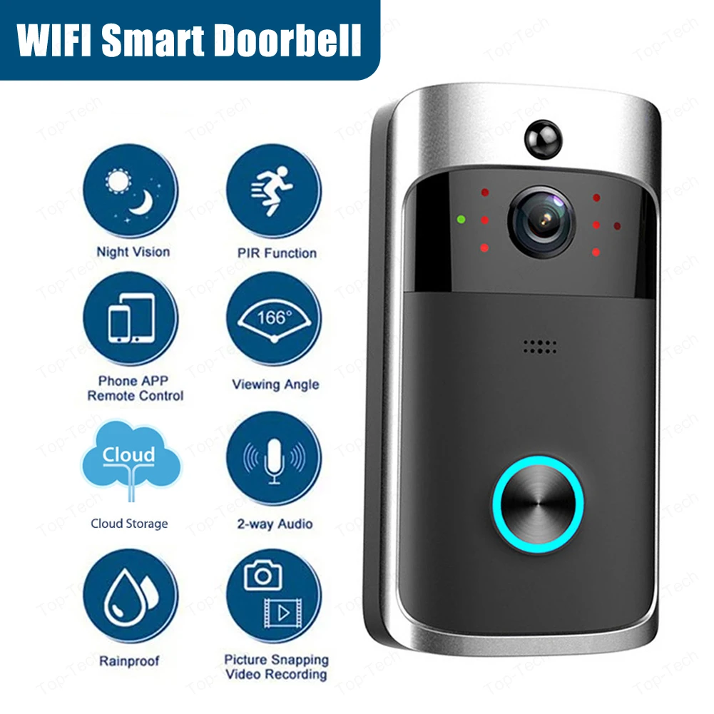 Comprar Timbre de monitoreo remoto V5, dispositivo de seguridad para el hogar, inalámbrico, visión nocturna, 720P, HD, detección de movimiento, micrófono con cancelación de ruido
