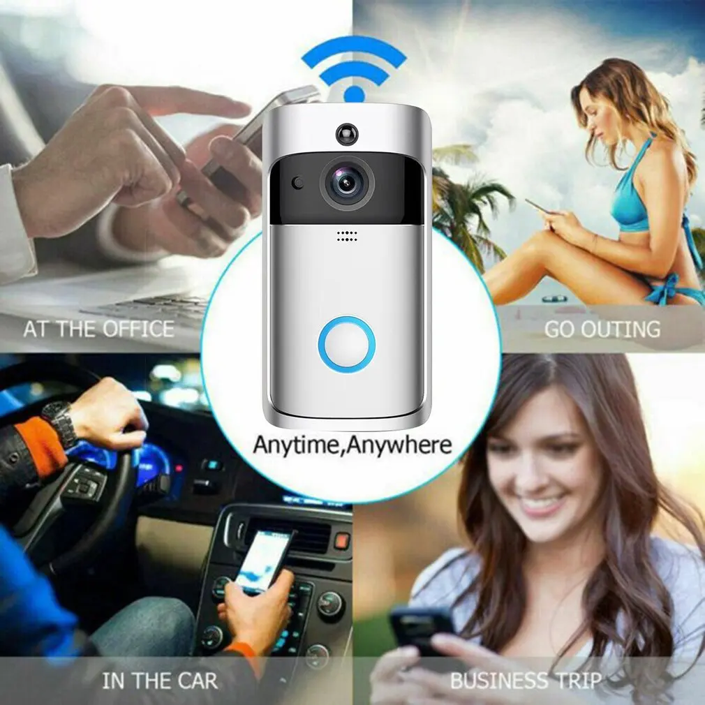 Comprar Timbre de puerta de seguridad V5, intercomunicador inalámbrico inteligente con vídeo, WiFi, grabación Visual, Monitor para el hogar, visión nocturna