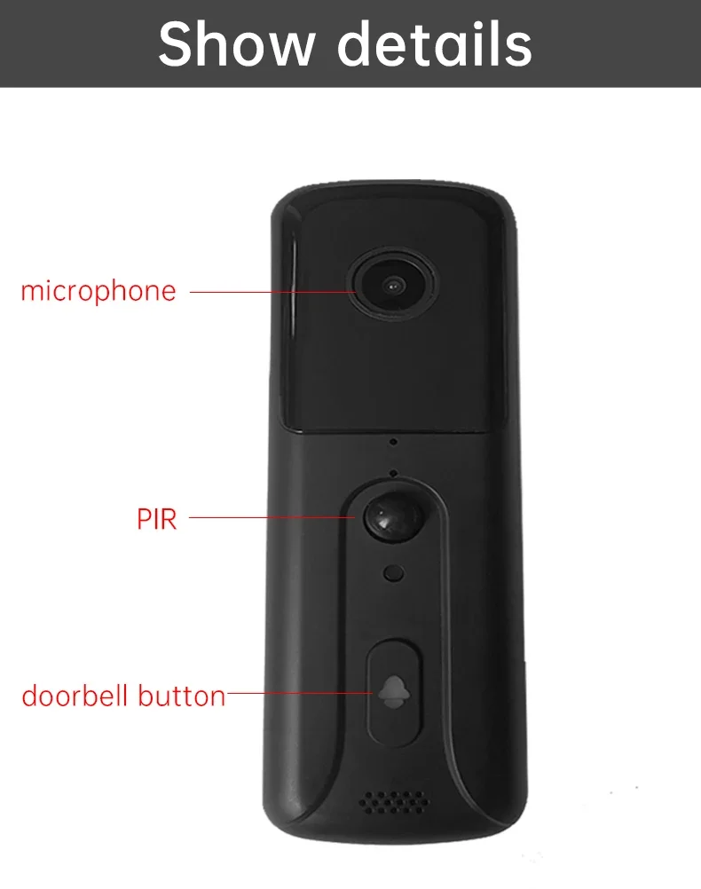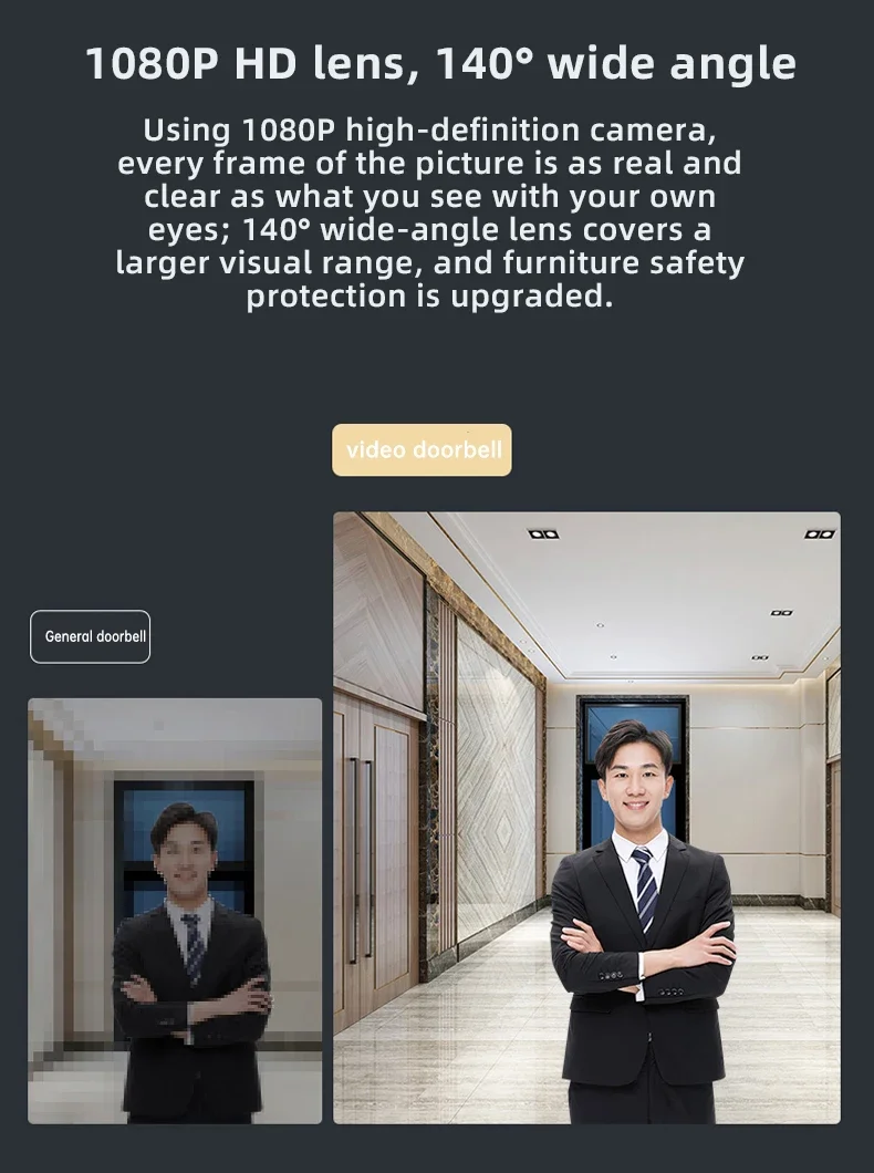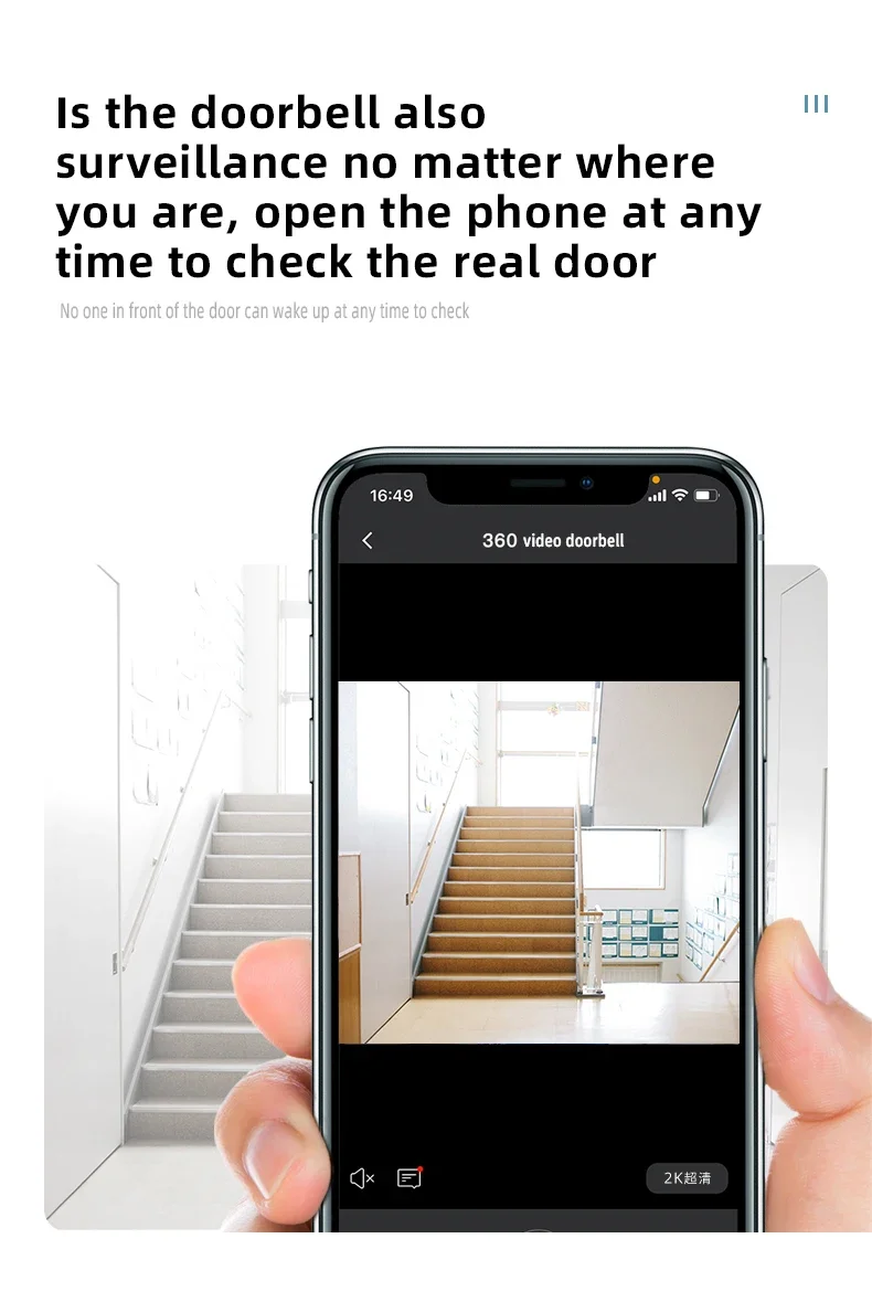 Timbre de vídeo con WiFi, 2,4G, 1080P, intercomunicador inalámbrico inteligente para exteriores, cámara inalámbrica impermeable con fuente de alimentación de ca/cc