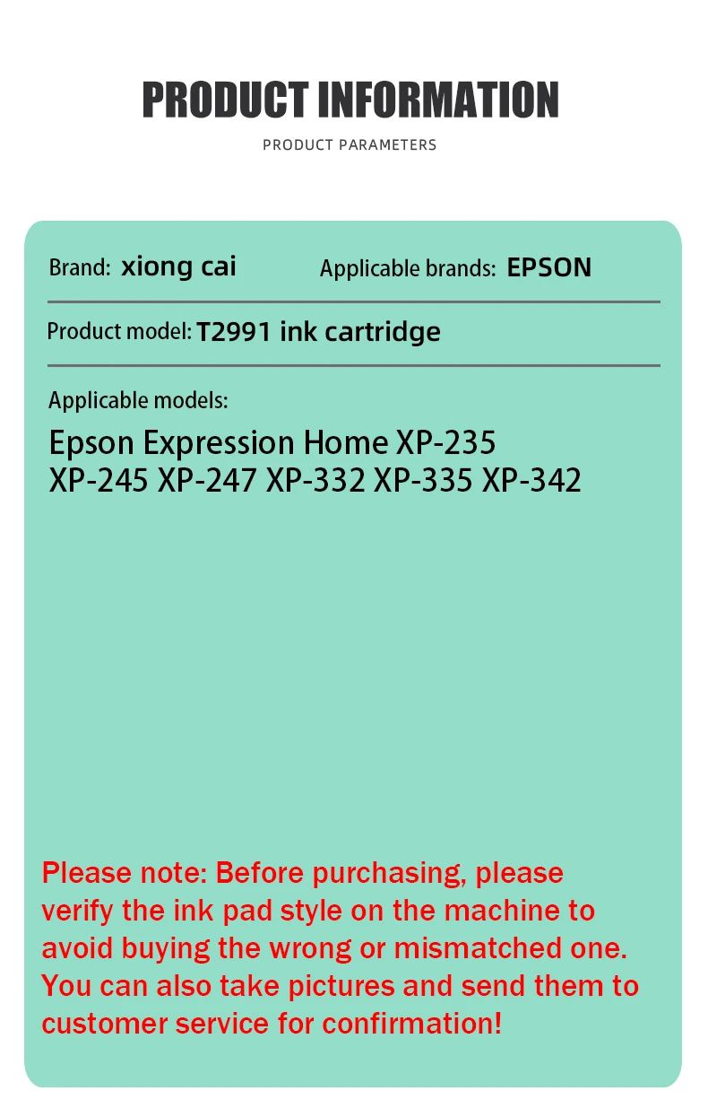 Modelo compatible:Epson XP 235 335 332 432 435 442 332 342 345 245 247 355 XP255 352Impresora (para regiones de Europa)