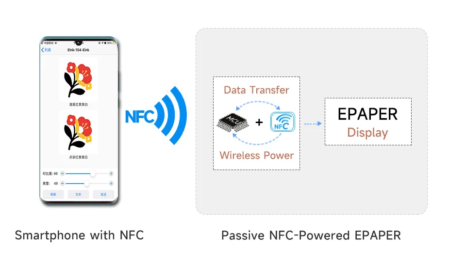 Para actualizar el contenido de la pantalla, use un teléfono inteligente con función NFC o un lector NFC, cerca del papel electrónico, se realizará en unos segundos.