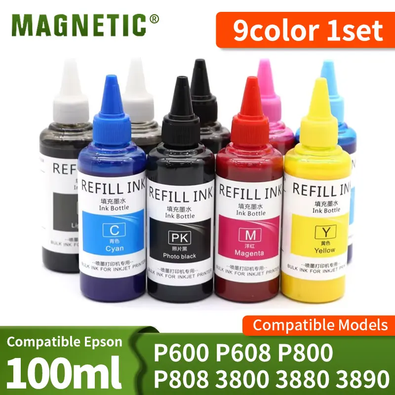 Tinta pigmentada de 100ML y 9 colores para Epson SureColor P600 P800 P808 Stylus Pro 3800 3880 7880 r3000 recarga de tinta pigmentada para impresora/1 Juego
