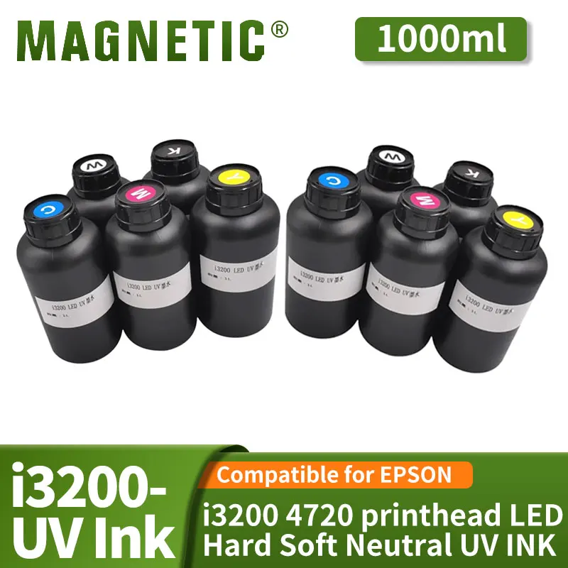 Comprar Tinta UV de 1000 ml para impresoras Epson I3200 U1 4720: tipos blandos/duros/neutros con verniz y opciones de imprimación