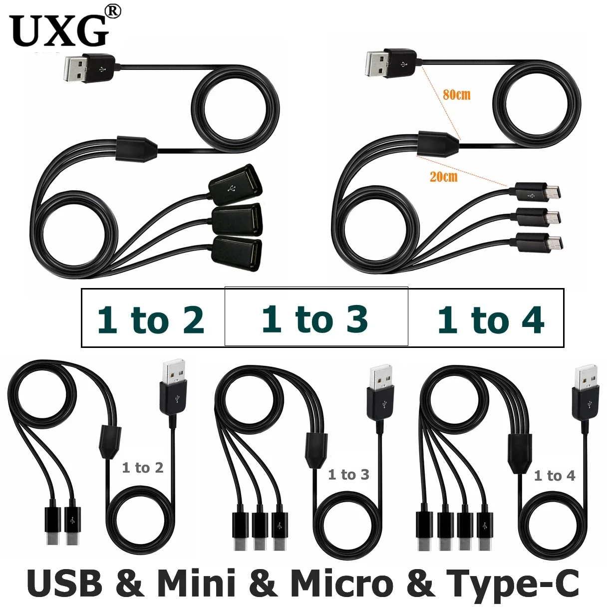Comprar Tipo-C 1 a 4 6 puertos tipo C USB C a Mini Micro 5pin USB Y divisor Cable de fecha de carga rápida múltiple para teléfono inteligente tableta
