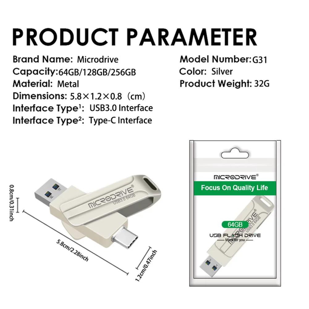 Tipo c 2 en 1 unidad flash USB 3.0 OTG Pen Drive de alta velocidad 64GB 128GB 256GB Micro USB stick Almacenamiento externo