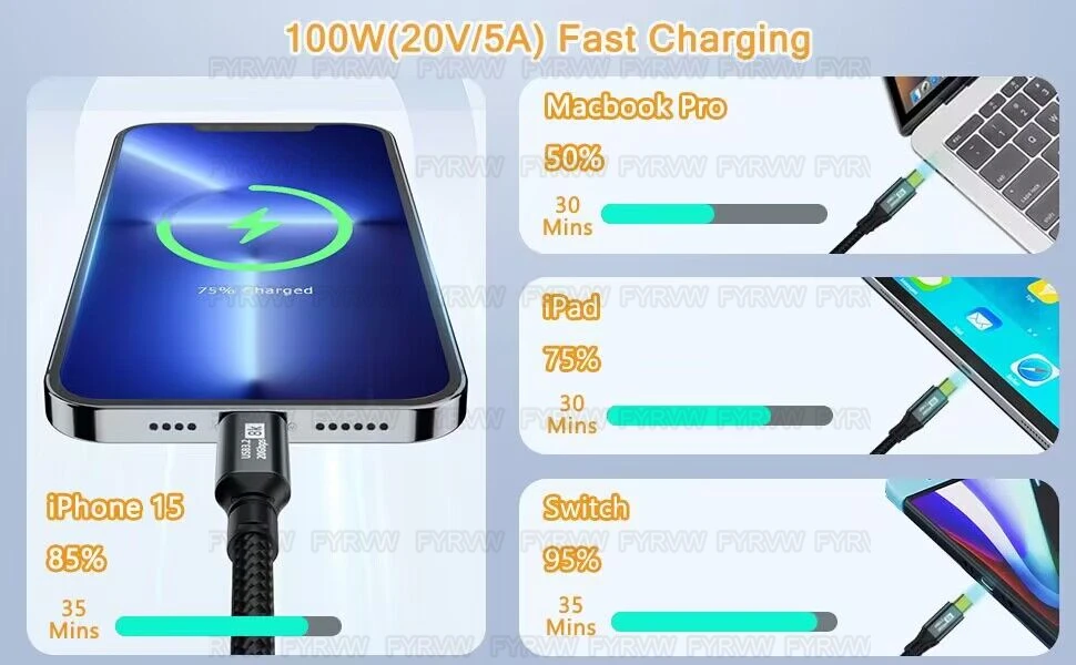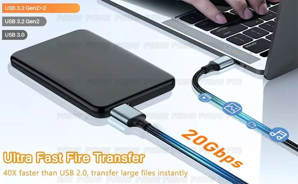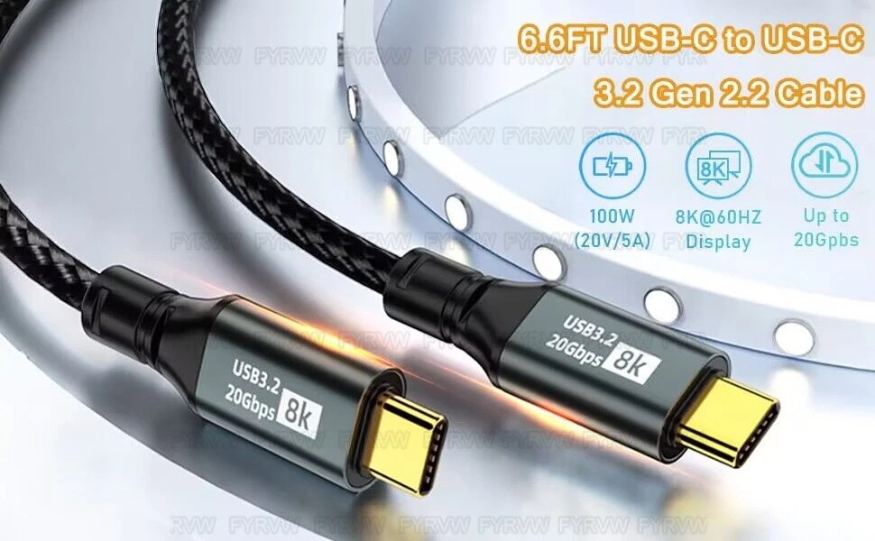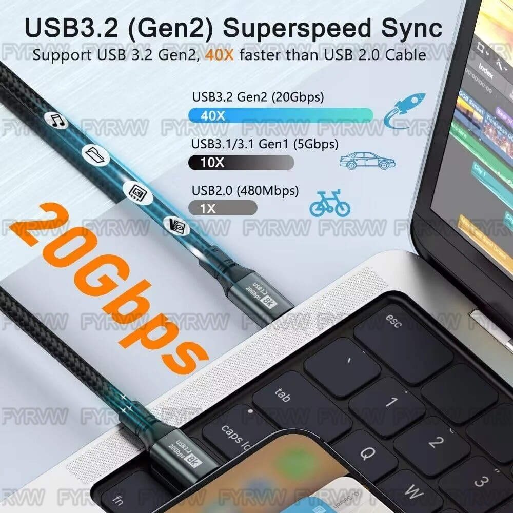 3: Cable USB C a USB C, 20 Gbps USB 4 Gen2 Tipo C 100 W Carga rápida Entrega de energía 5 A, vídeo 4K @ 60 Hz, Compatible con Oculus Xiaomi, etc.