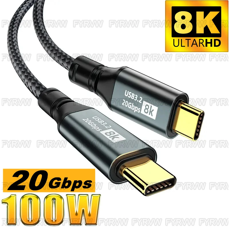 Cable USB-C trenzado de nailon PD de 100W, Cable USB3.2 Gen2, 20Gbps, 4K@60Hz para accesorio HDTV VR