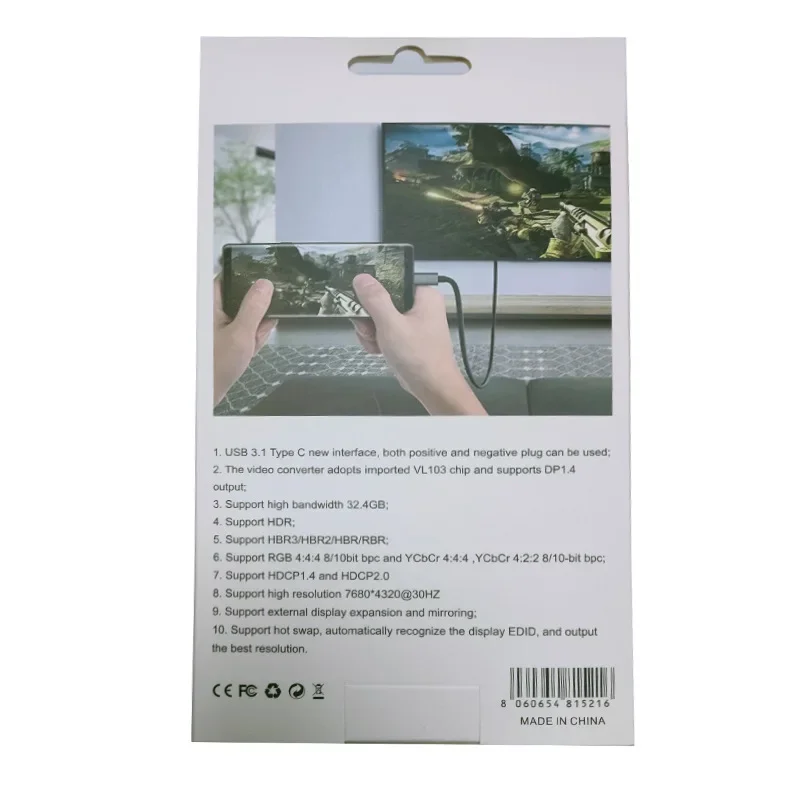 Cable tipo c a DP grande HD Cable adaptador DP de 1,8 m Cable convertidor de conexión de datos 8K120HZ